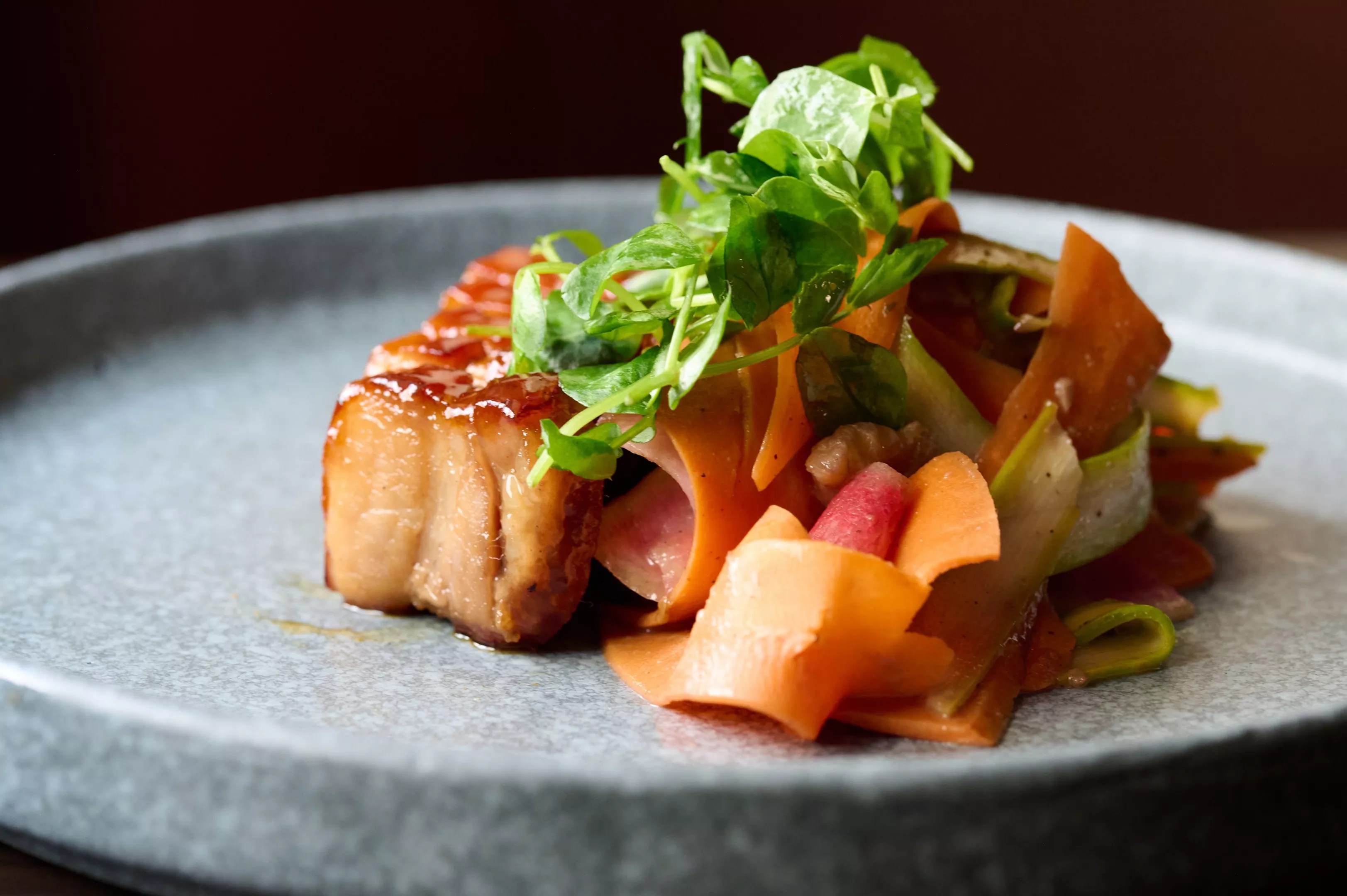 Most of Uchiko’s dishes are sized like tapas, which allows for plenty of opportunity to traipse across the menu. At the sushi bar, we opened with the crisped pork belly ($21), served hot, but not from the grill. The half dozen slices of pork belly, fat brilliantly rendered, offered a sweet, savory and slightly spicy note, and the delicate array of cabbage, carrots and beets provided a tempered balance.
