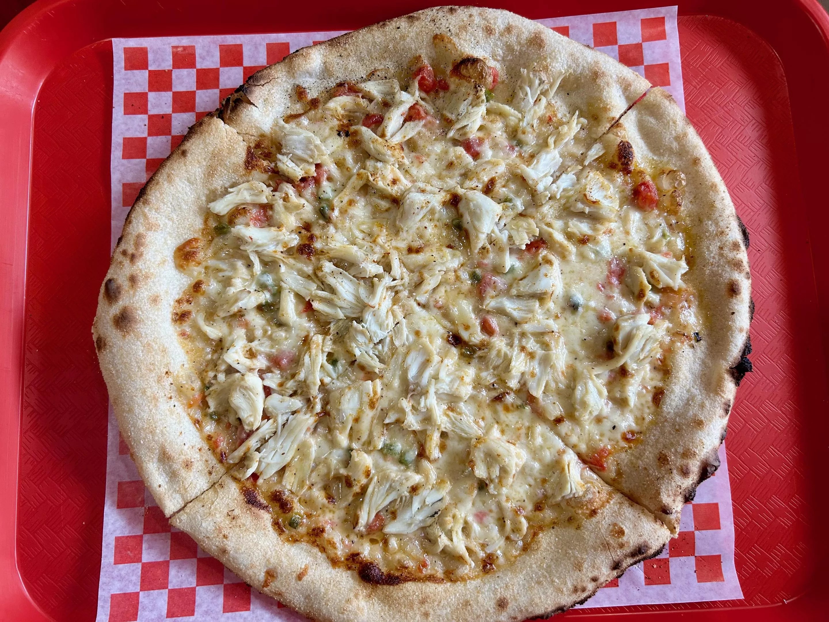 The third pie was a real stunner. Called the Crab Queso, it is as described. Handmade dough covered with house-made fire-roasted queso, fresh mozzarella, a sprinkle of Old Bay seasoning and jumbo lump crab. It was rich and indulgent. The seasoning pulled everything together perfectly. Nedwetzky said this pizza was an epiphany after a few drinks on the beach in Florida at a crab boil. We would make the drive again just for this.