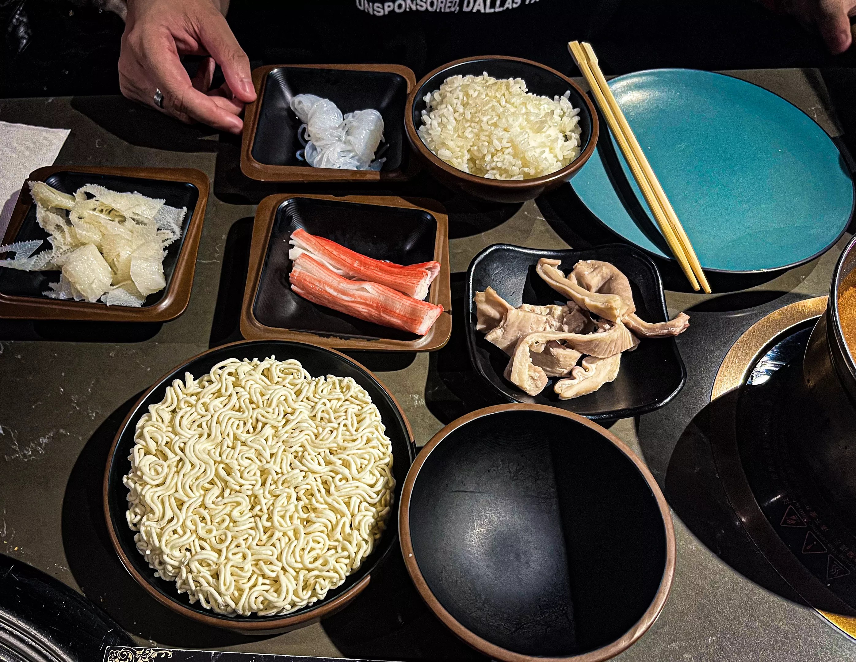 There’s an optional Korean BBQ add-on for $5 more, but we passed this time around. While it allows you to order from a list of KBBQ-specific meats, we’ve found it to be more work than it’s worth. The hotpot cooks the meat just fine on its own, and it tastes better that way too.