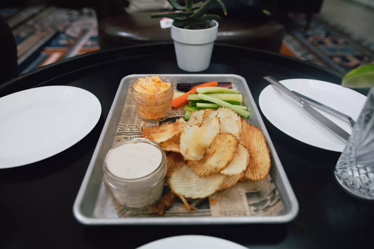 House-made chips, onion dip and pimento cheese will start any meal on the right foot.