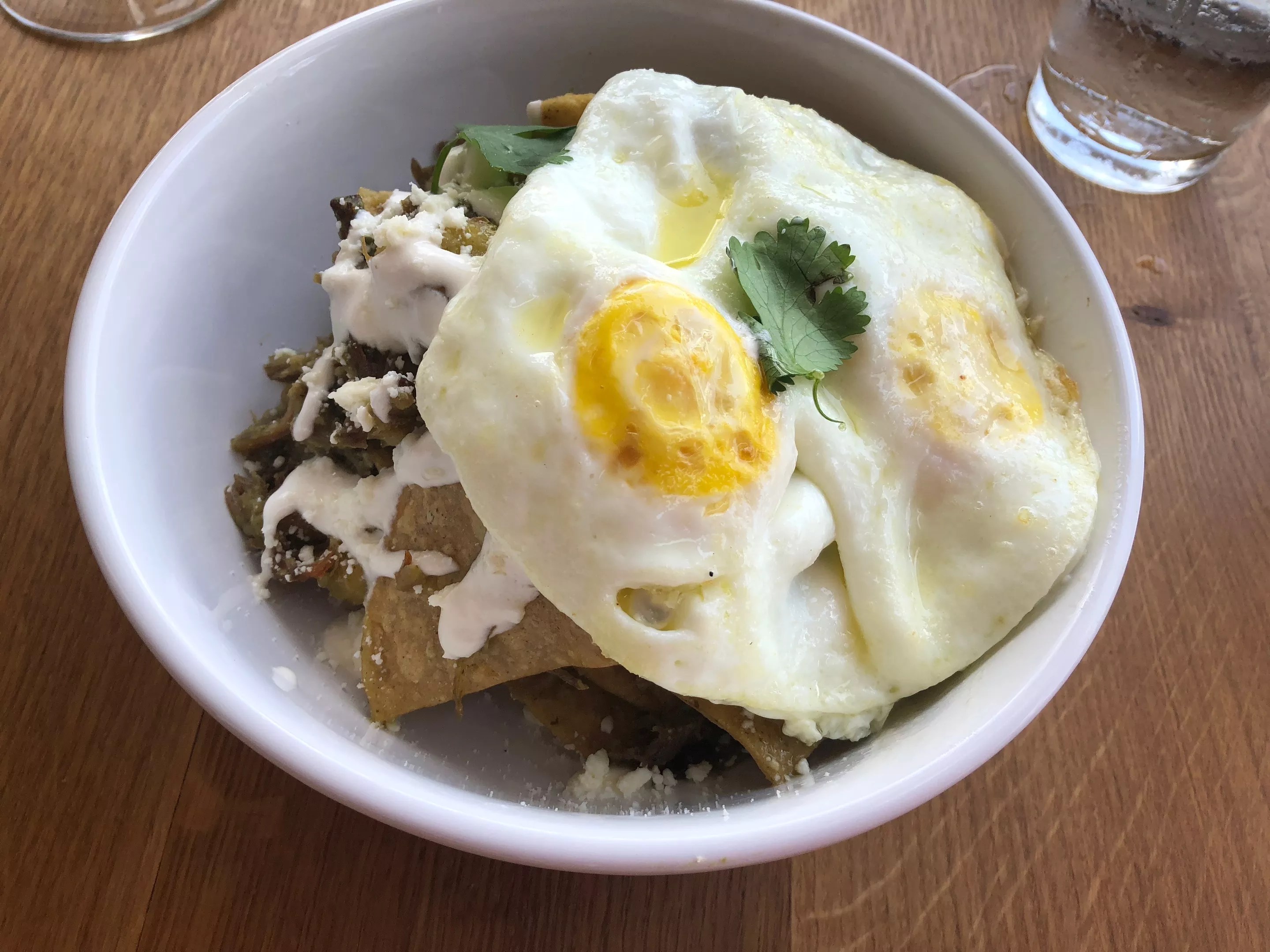 The chilaquiles ($13) feature pulled pork, salsa verde, home fries, Cotija cheese and eggs cooked how you like them. The tortilla chips keep their crisp in this assortment, which is especially nice.