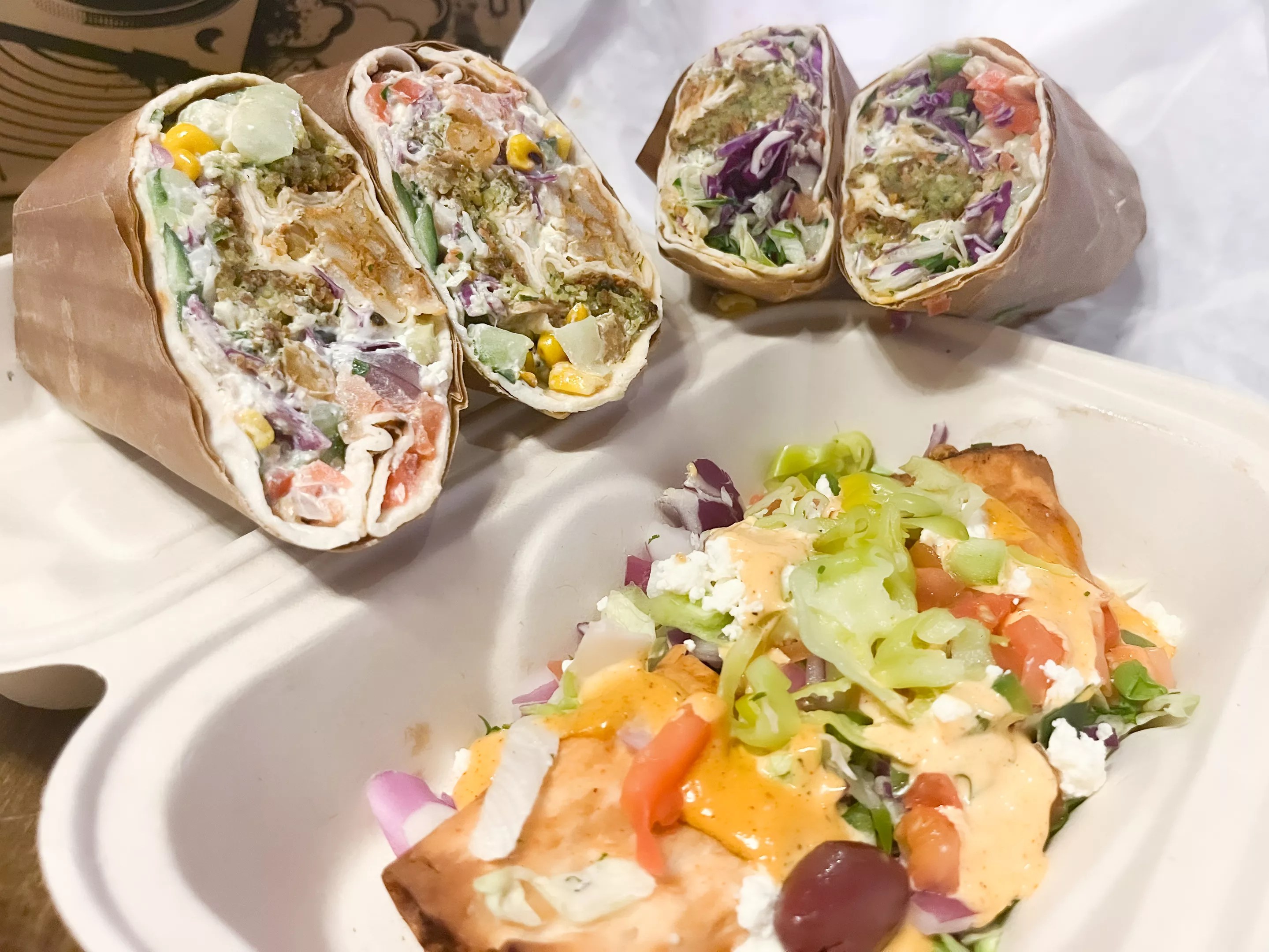 Here the theme is vibrant, flavorful Mediterranean street food like gyros, doner wraps and Berliner fries. Bowls loaded with gyro meat, wraps filled to the brim with falafel and fries piled high with feta cheese are just some of the things that caught our eye walking to our table. It would probably take a couple of visits (and a pretty big appetite) to get through the entire menu here. But as we like to say, that’s even more reason to come back again.