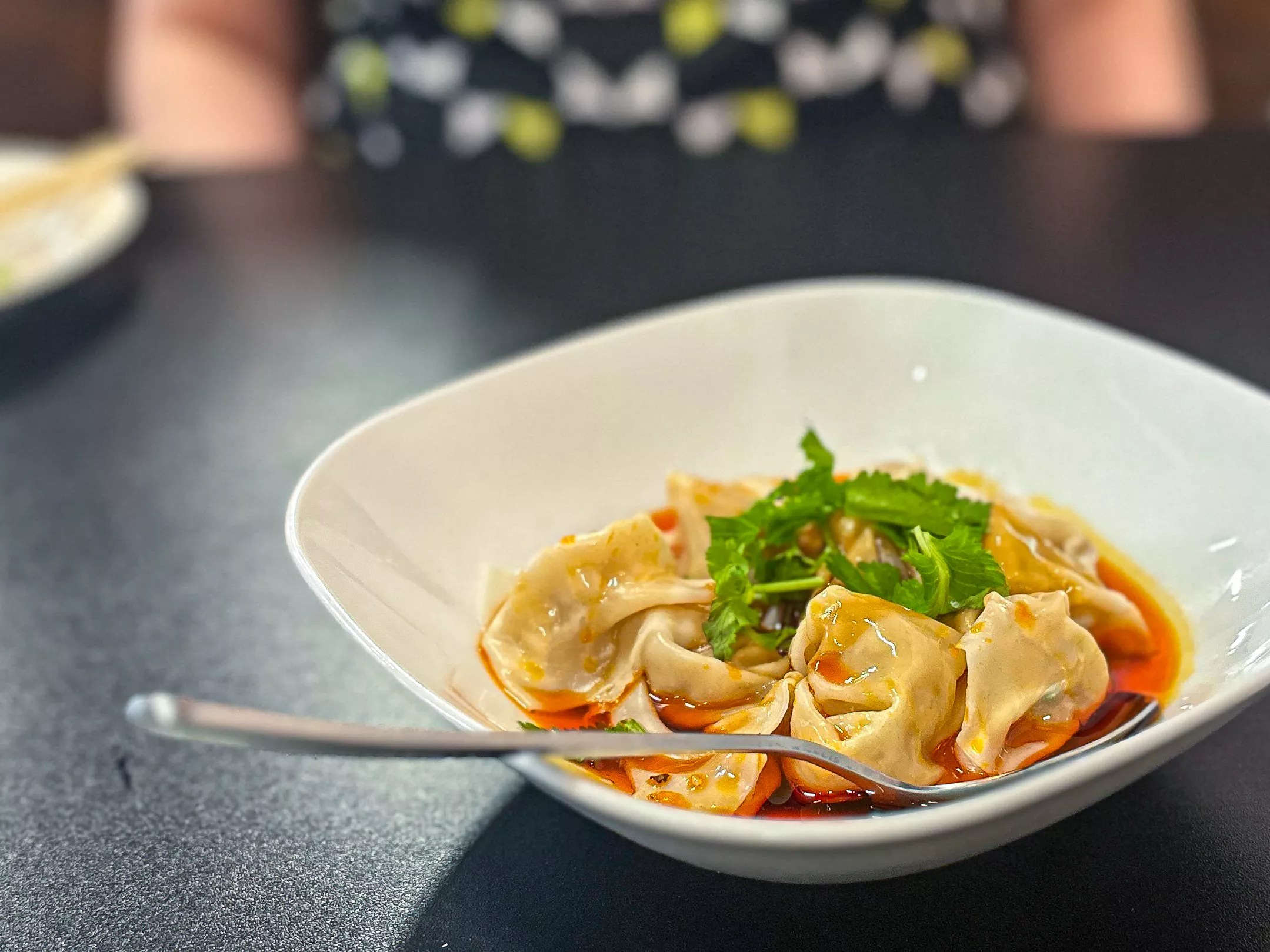 Next up was a bowl of wonton with chili oil, another common go-to for us. These come eight to an order with just the right amount of chili oil at just the right temperature level. They weren’t overcooked, which we appreciate.