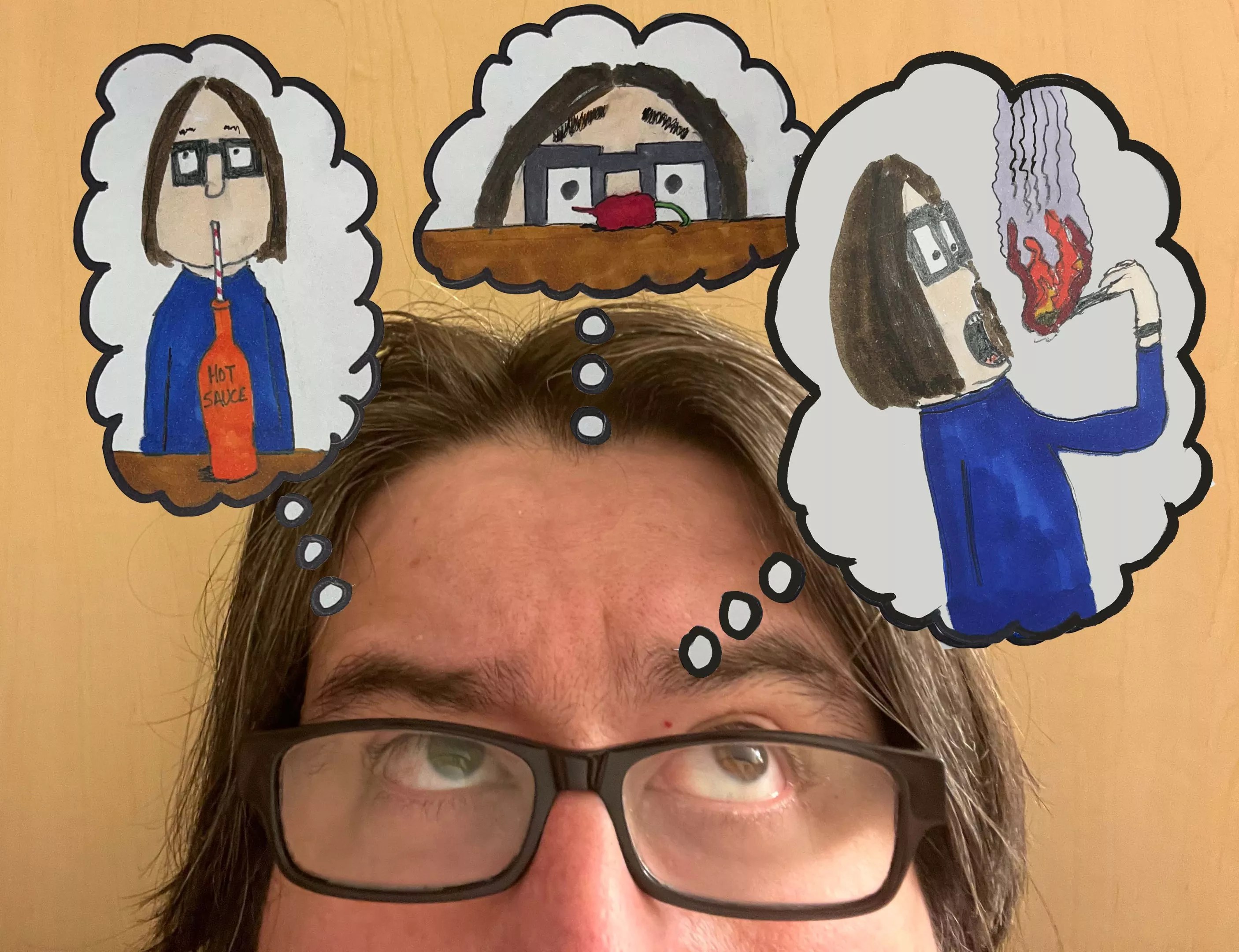 Yes, we had to tell Danny not to test his tasteless tongue by drinking hot sauce, chewing a Carolina Reaper pepper or eating fire.