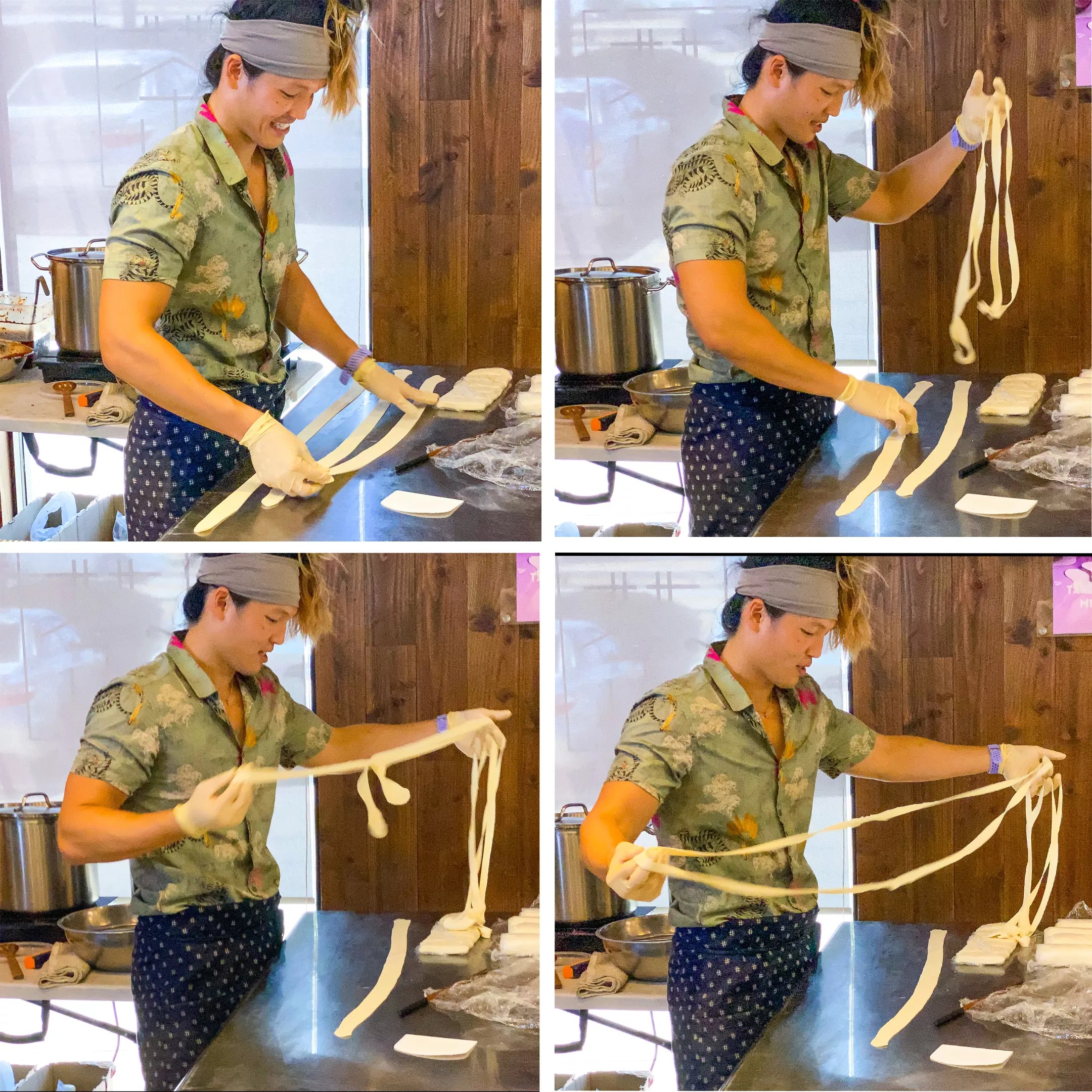 Food was still foremost in his mind, however. After seeing a YouTube video of a noodle puller, he dove headfirst into this art, practicing daily for weeks before finally preparing some noodles for friends at home. Eventually, tennis coaching took a back seat to the fine art of noodle pulling, and TeaGu Café was born using the pop-up model.
