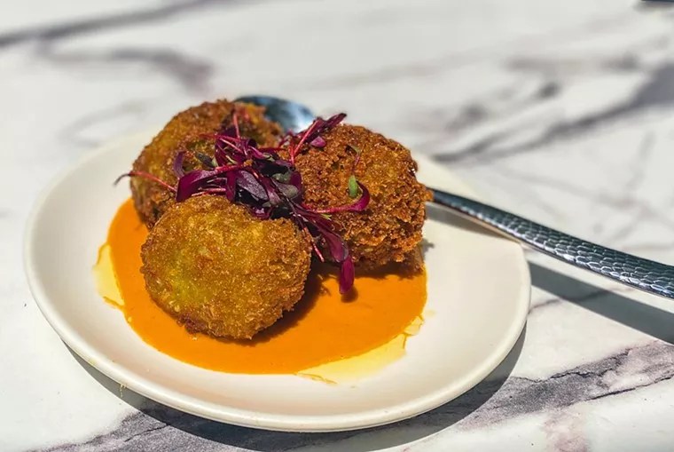 The District joins the plethora of places that offer and encourage ordering several shareable plates rather than the traditional multicourse format of dining. The website touts “globally inspired shareable plates using ingredients from local artisans and exceptional producers around the world,” and they encourage the guests to let them help create the optimal pairing of whiskey or wine with their meals.