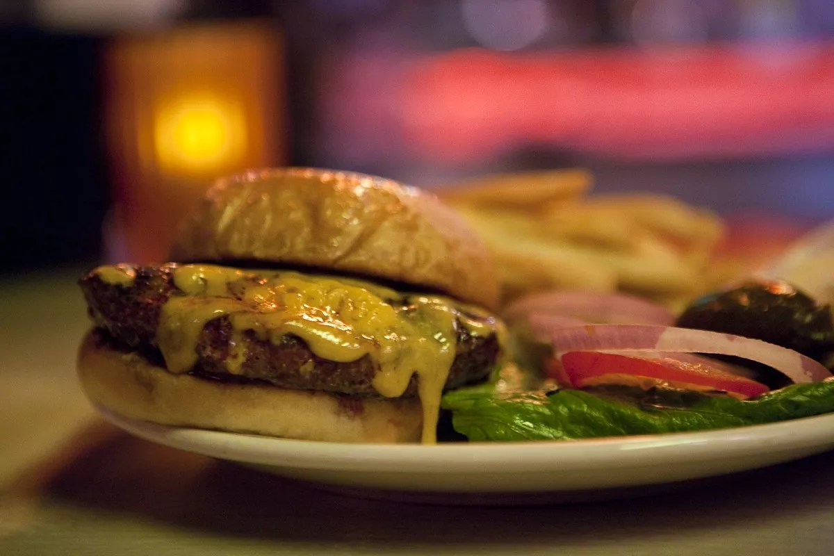 Moonlit cheeseburgers and onion rings have been Lee Harvey’s staple for years. The kitchen fire-grills a prime Angus patty (80% beef, 20% fat), seasoned well, with toppings on the side. On a breezy patio night, you’ll glimpse the fire leaping from the old-fashioned grill. The cheese is molten for a few short minutes; that’s all you’ll need to finish the burger.