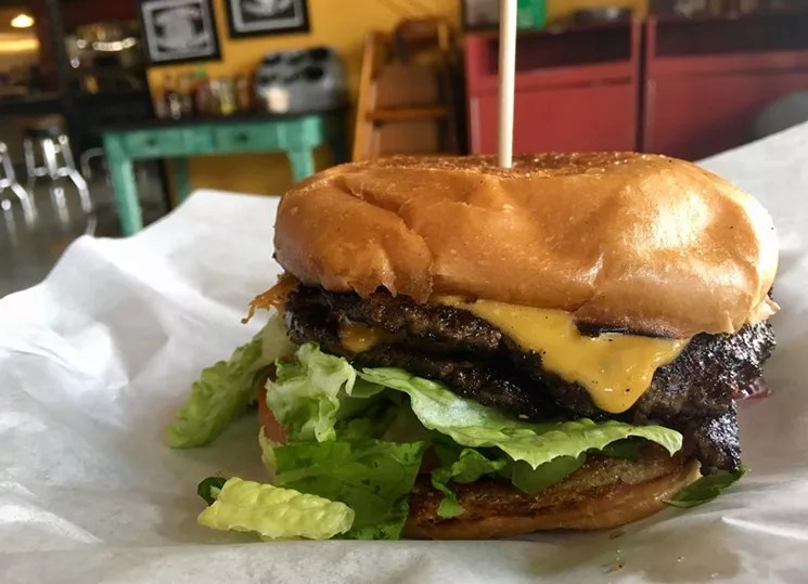 The entire menu at Sky Rocket Burger, the joint tucked, very snugly, into a strip mall off the highway, is comprised of a single, double and elephantine triple cheeseburger. That’s why you’re here, after all: You’re looking for a no-fuss cheeseburger. Owners Scott and Tio Wagner grind the Angus beef behind the kitchen. They sear the hand-formed patties. Bronzed, sparkling beef juices from the hot griddle run into the lettuce, onion, and tomato. No condiments needed here, which is the mark of a truly great burger.