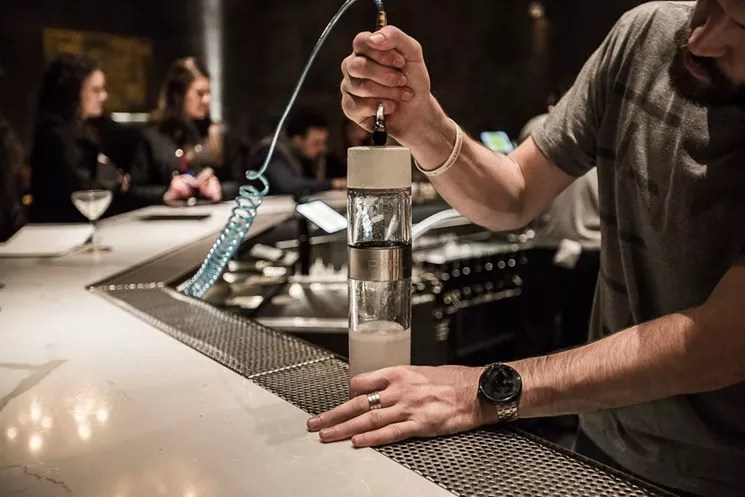You won’t spot much of the technology used at Hide, but you will occasionally witness bartenders using machines like this one, which injects the gin and tonic with high-grade carbon dioxide to create carbonation.
