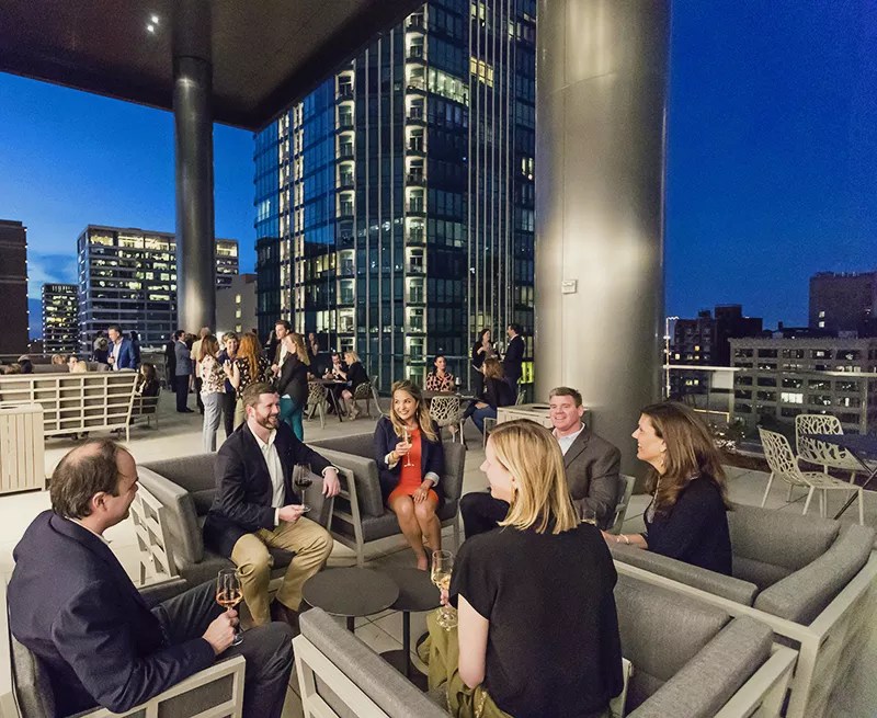 The Uptown Terrace is on the fourth floor of the hotel with views overlooking downtown Dallas. This premier outdoor venue includes a heated infinity pool, comfortable lounge seating, cabanas, a full-service bar, LCD HDTVs and fabulous food. Let the breeze carry you away as you relax around the built-in fire pit. At night, enjoy the mesmerizing lights of the city as they reflect off of the infinity pool. Sure to become a staple among locals, first-time guests and visitors, the Uptown Terrace is the crown jewel of the hotel.