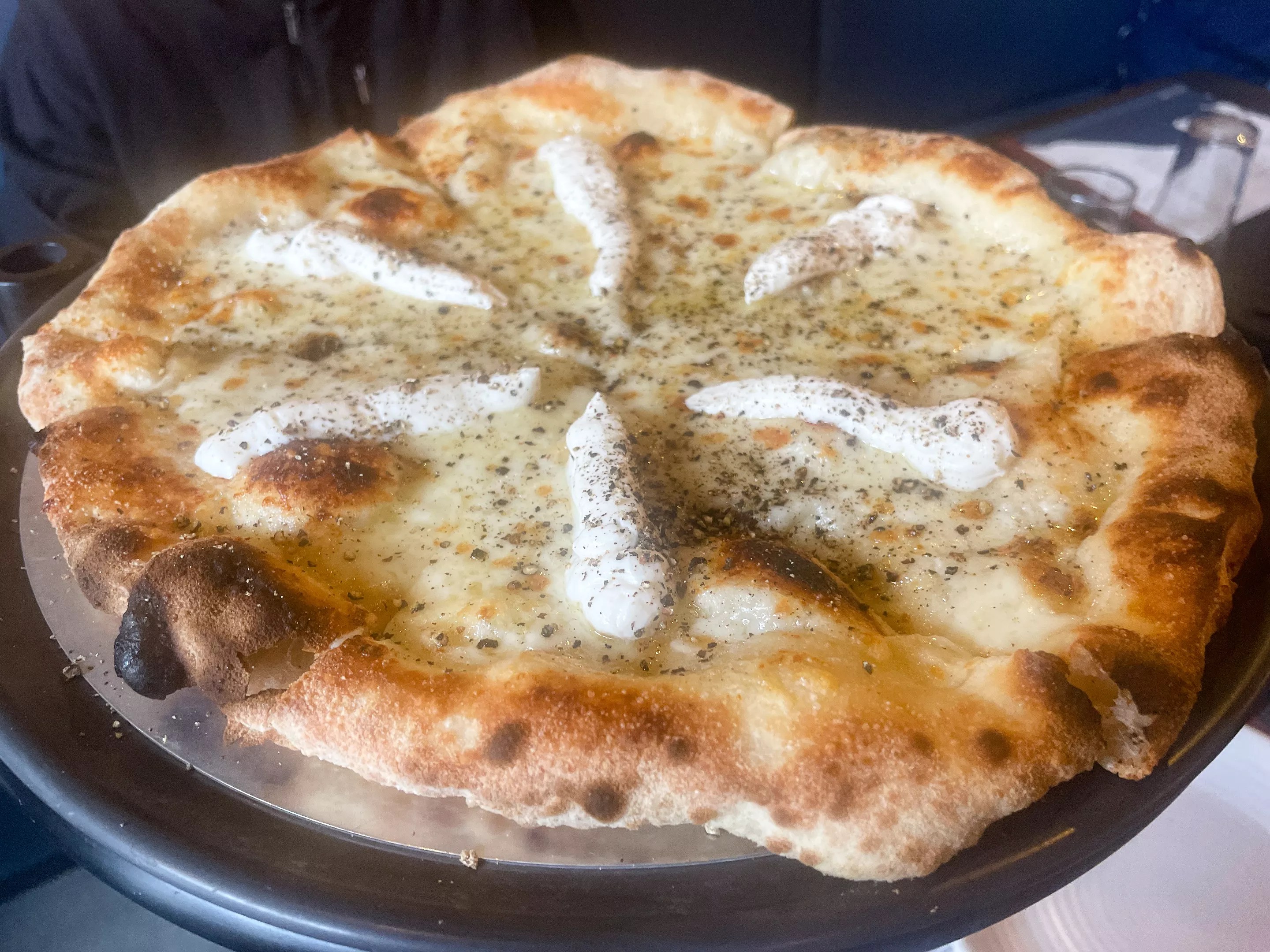 Pizzana is the hot new pizza joint that opened a few weeks ago on Knox Street courtesy of the founders of Sprinkles Cupcakes. The signature pizza, the Cacio e Pepe, is a gift from up above, an innovative re-imagination of the classic pasta dish served on a perfectly cooked Neapolitan crust. Four simple but high-quality ingredients are used for the pizza toppings: provoloncino d’agerola, fior di latte, parmigiano crema and cracked black pepper. The flavor combination will have you returning for a repeat experience. (by Angie Quebedeaux)