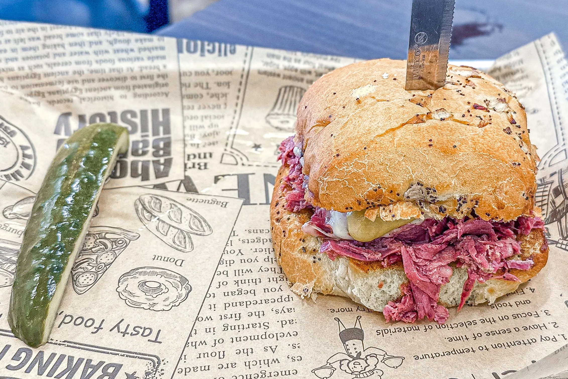 One of their trademark sandwiches, the corned beef, is not always available due to the dreaded supply-chain issues and high ingredient costs. On this day, however, the restaurant’s Facebook page said it was available, so this was one of our choices along with the bang bang chicken.