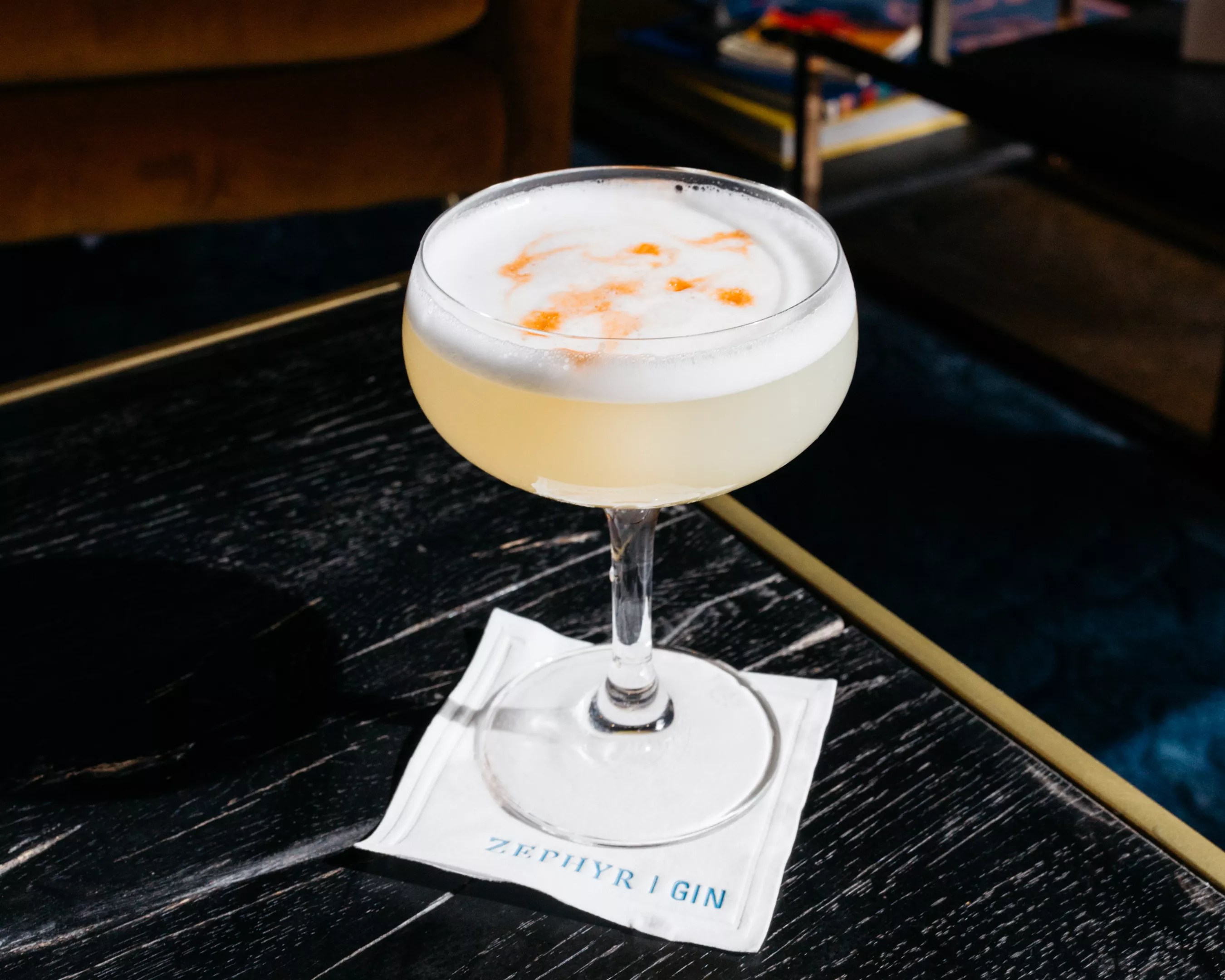 Painted Pisco ($16): Zephyr Gin, simple syrup, fresh lime, egg white, Angostura bitters