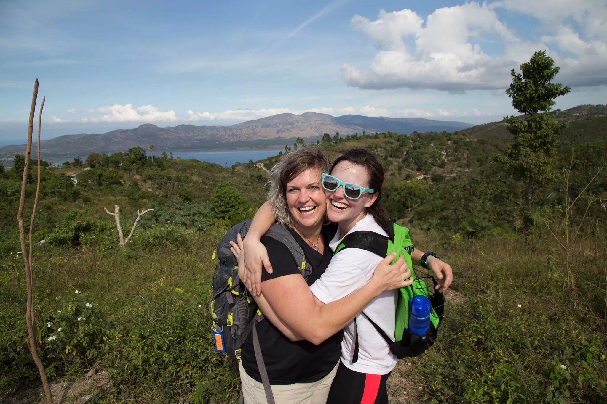 Nearly falling off a hill with Sarah Marsalis-Luginbill (left) near Yvon, Haiti.