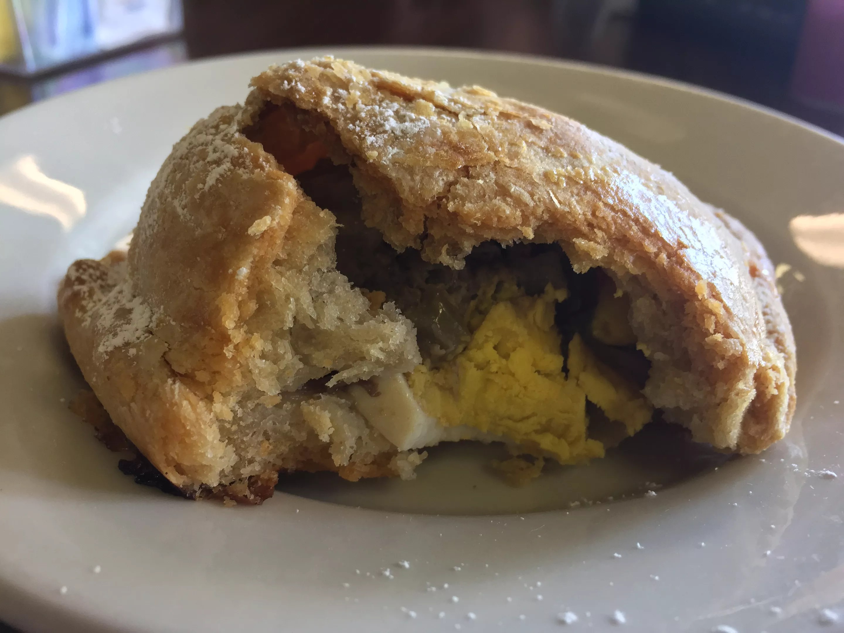 Tineo Cafe’s beef empanada with egg.