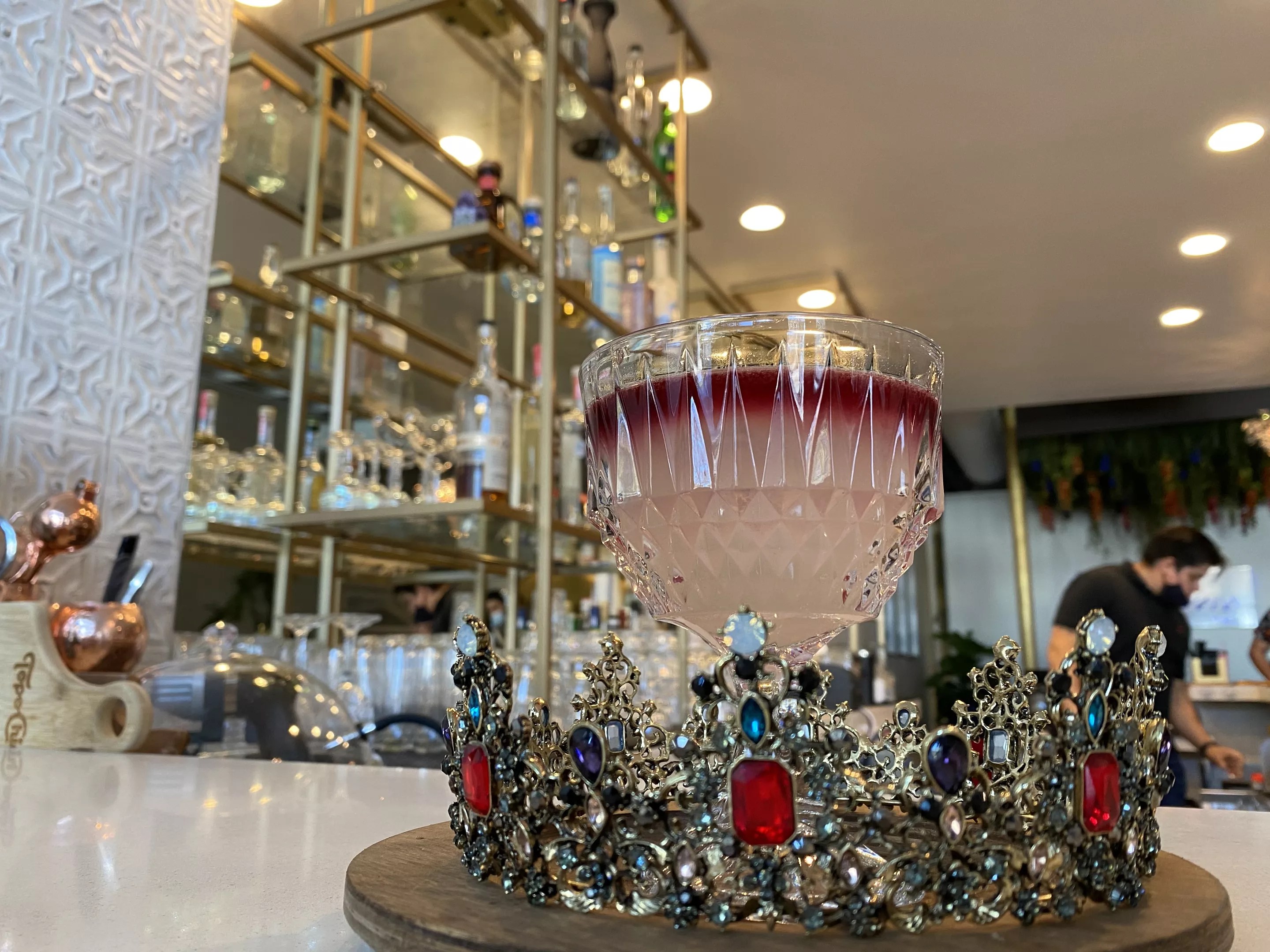 Patrons eager to drink libations made with mescal, CBD oil and even 24K gold flakes will find no shortage of options on the drink menu curated by mixologist Betty Cocktail. The must-order drink is the Crown Jewel, a mescal and red wine cocktail served on a platter lined by a silver crown.
