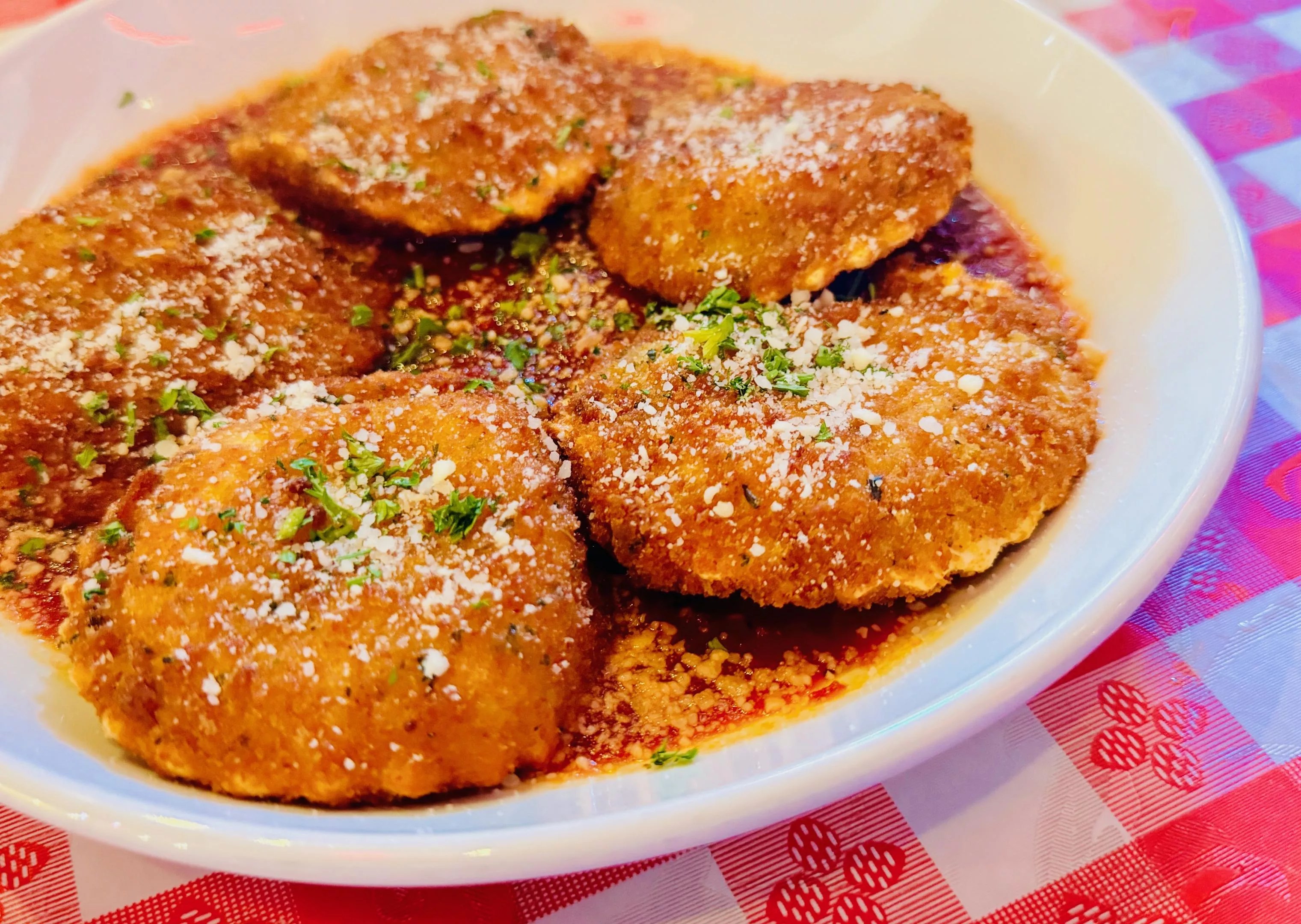 Inside Oreste’s on a Wednesday afternoon recently, the restaurant was empty, save for one other diner. So, we had the full attention of the server, which was nice. The space is bright, a white canvas with black and blood-red accents. Tablecloths are red-and-white-checkered and there are some big booths in addition to tables. Old photos of Italians playing bocce dot the walls. A TV over the full bar had sports on, and there are a handful of seats at the bar.