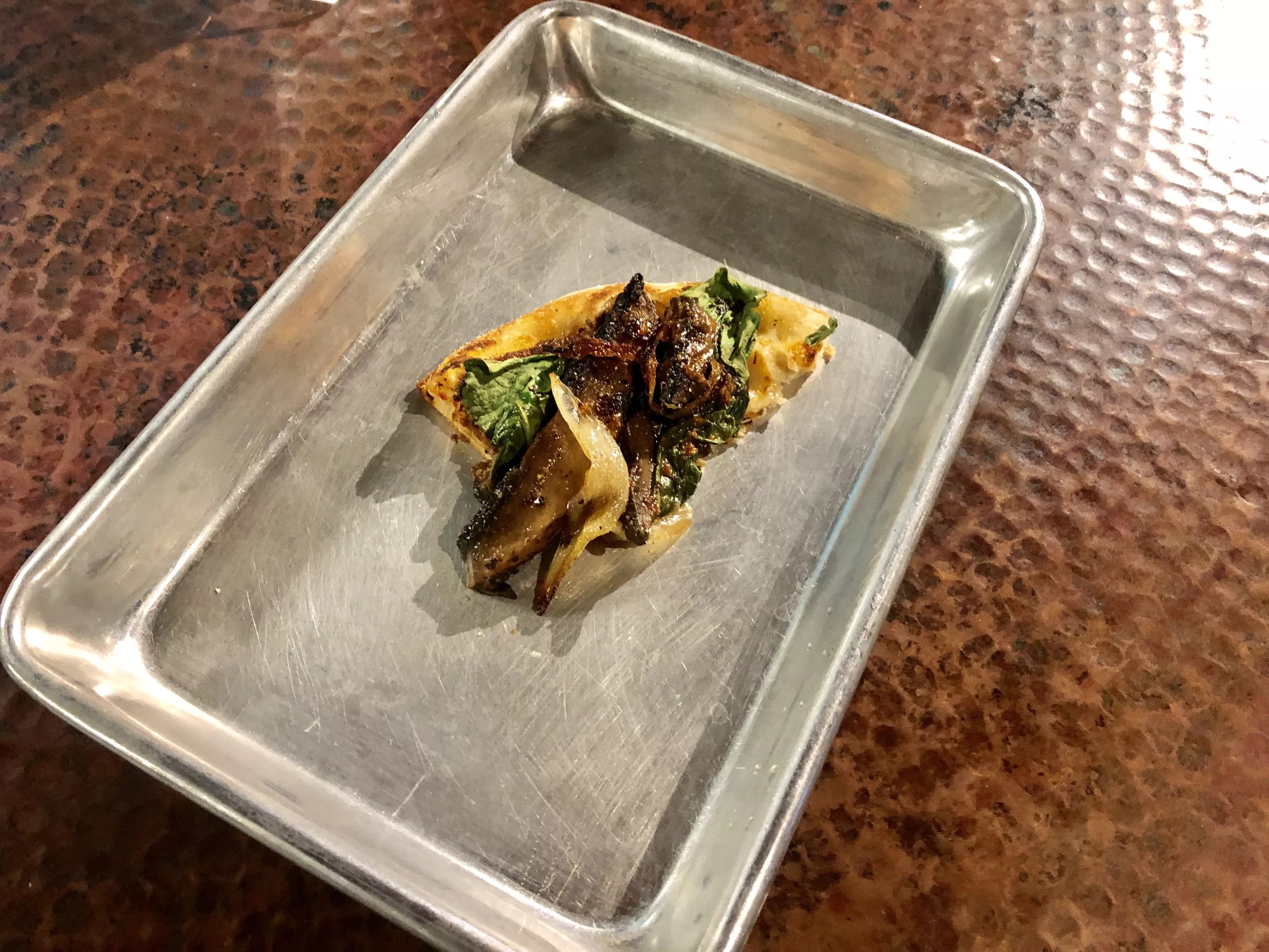 A slice of the Bella pizza, looking sad because people – vegans and meat-eaters alike, it seemed – were getting competitive over who was getting slices (even though there was plenty to go around).