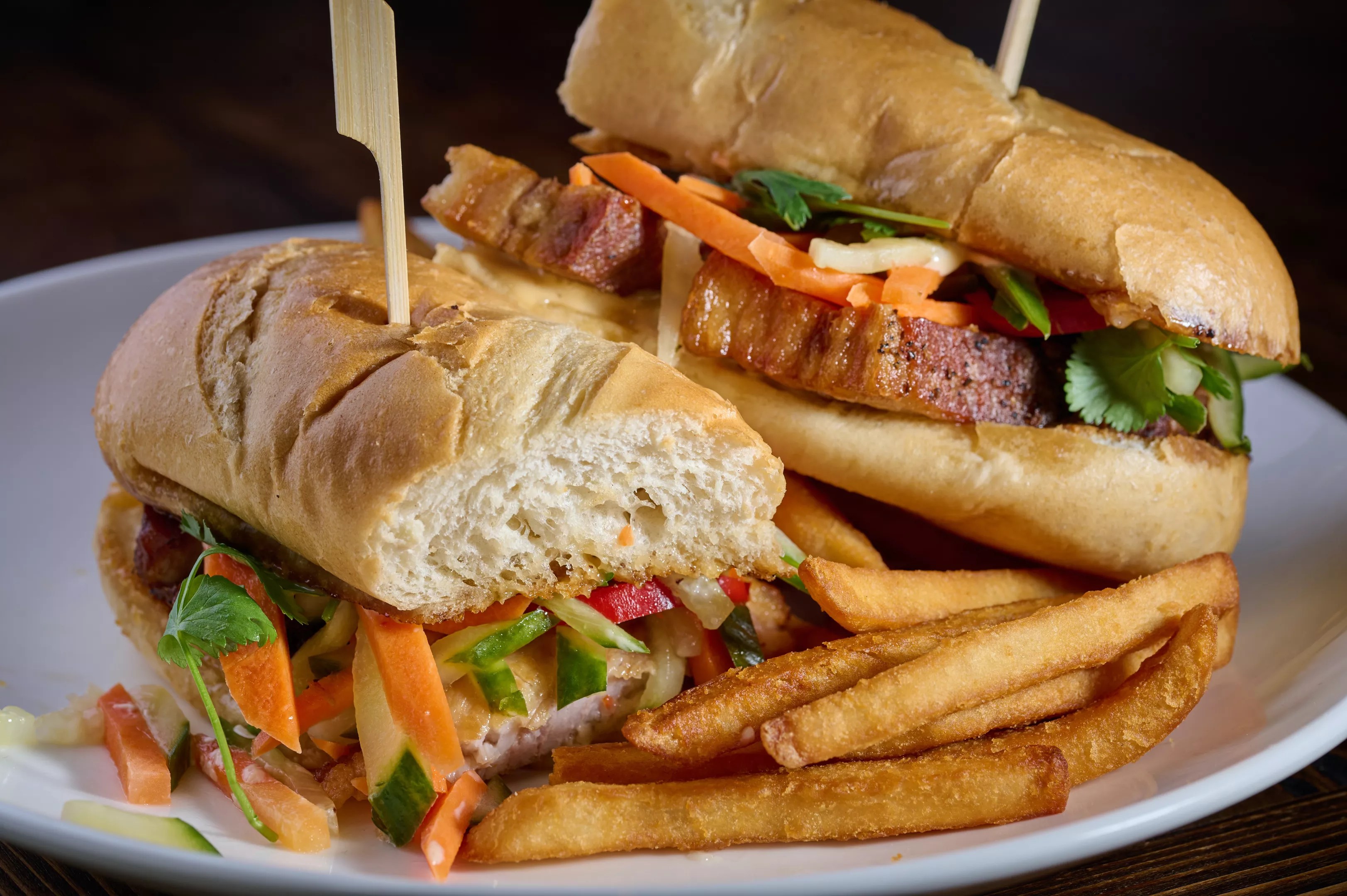 A lunch visit renewed our faith in Toussaint’s bread-making abilities. We tried the namesake Toussaint burger ($18) that features a wagyu burger patty, butter lettuce and onions on a more sturdy brioche bun, which was up to the task of containing the juicy burger. We also ordered Toussaint’s take on a bánh mì ($16), which showcased tender pork belly tucked into a flaky baguette, dressed with chili aioli and a radish and carrot namasu. Morsels of savory pork paired perfectly with crunchy slaw and tangy aioli and made for a perfect sandwich.