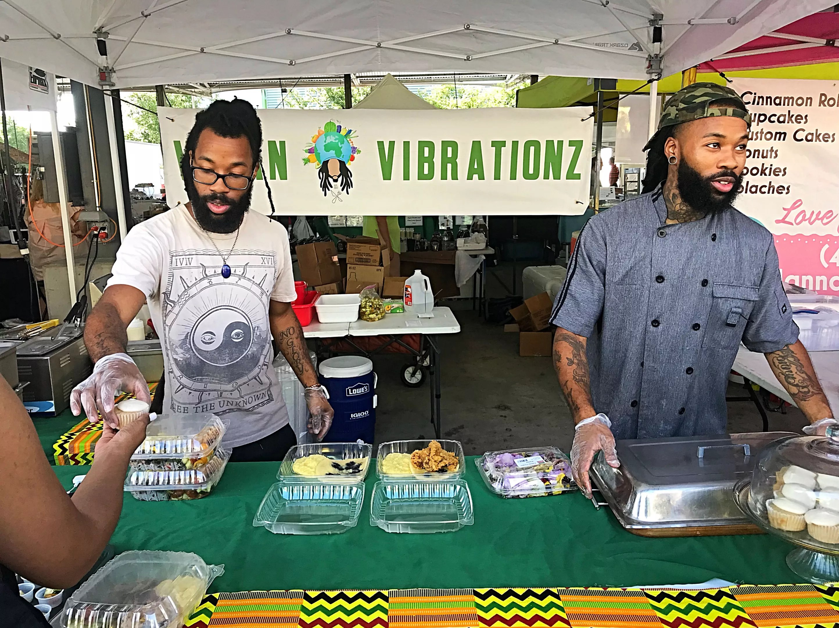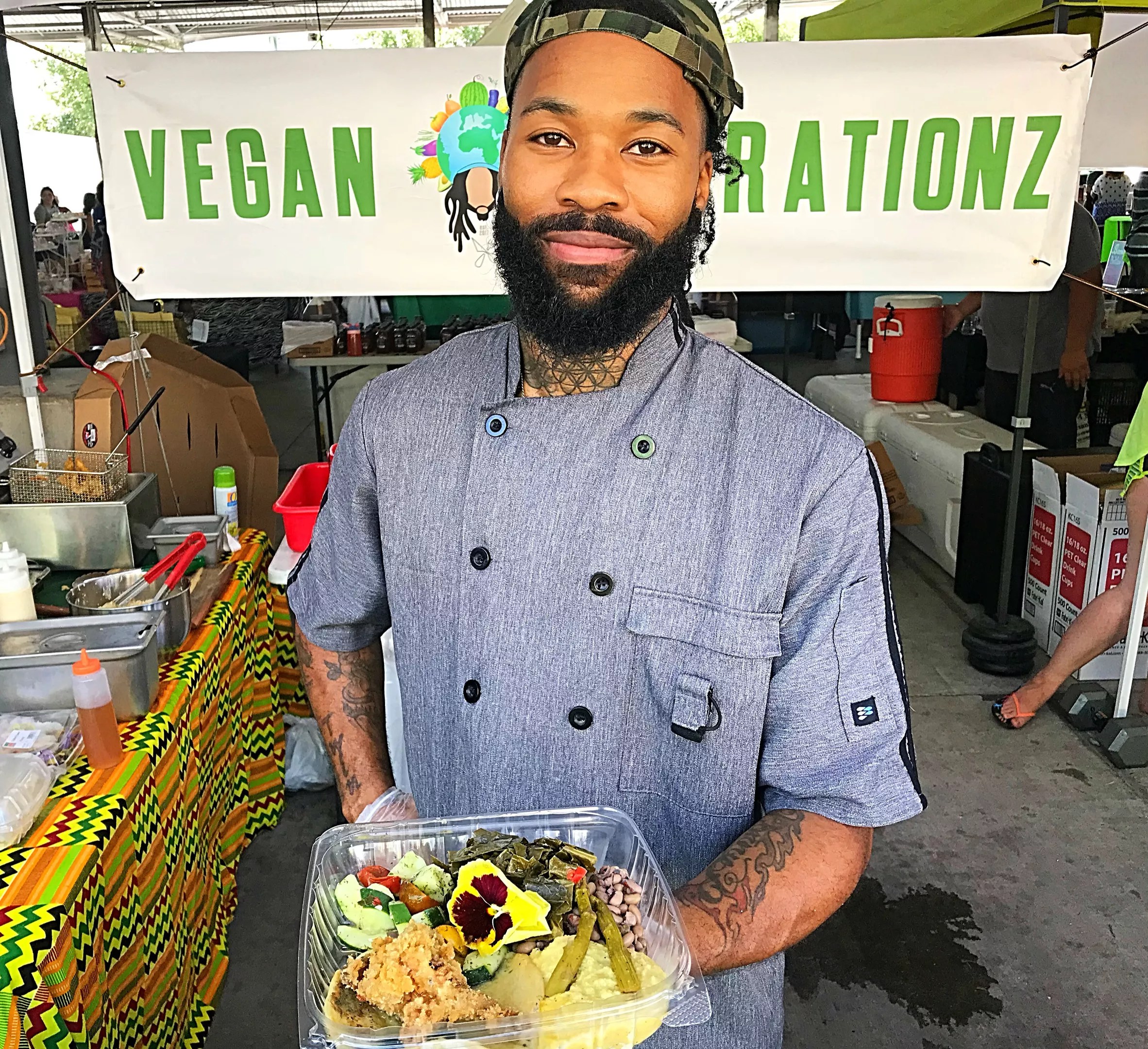 Jovan Cole, owner of Vegan Vibrationz, a popular food stand (and catering business) at Dallas Farmers Market.