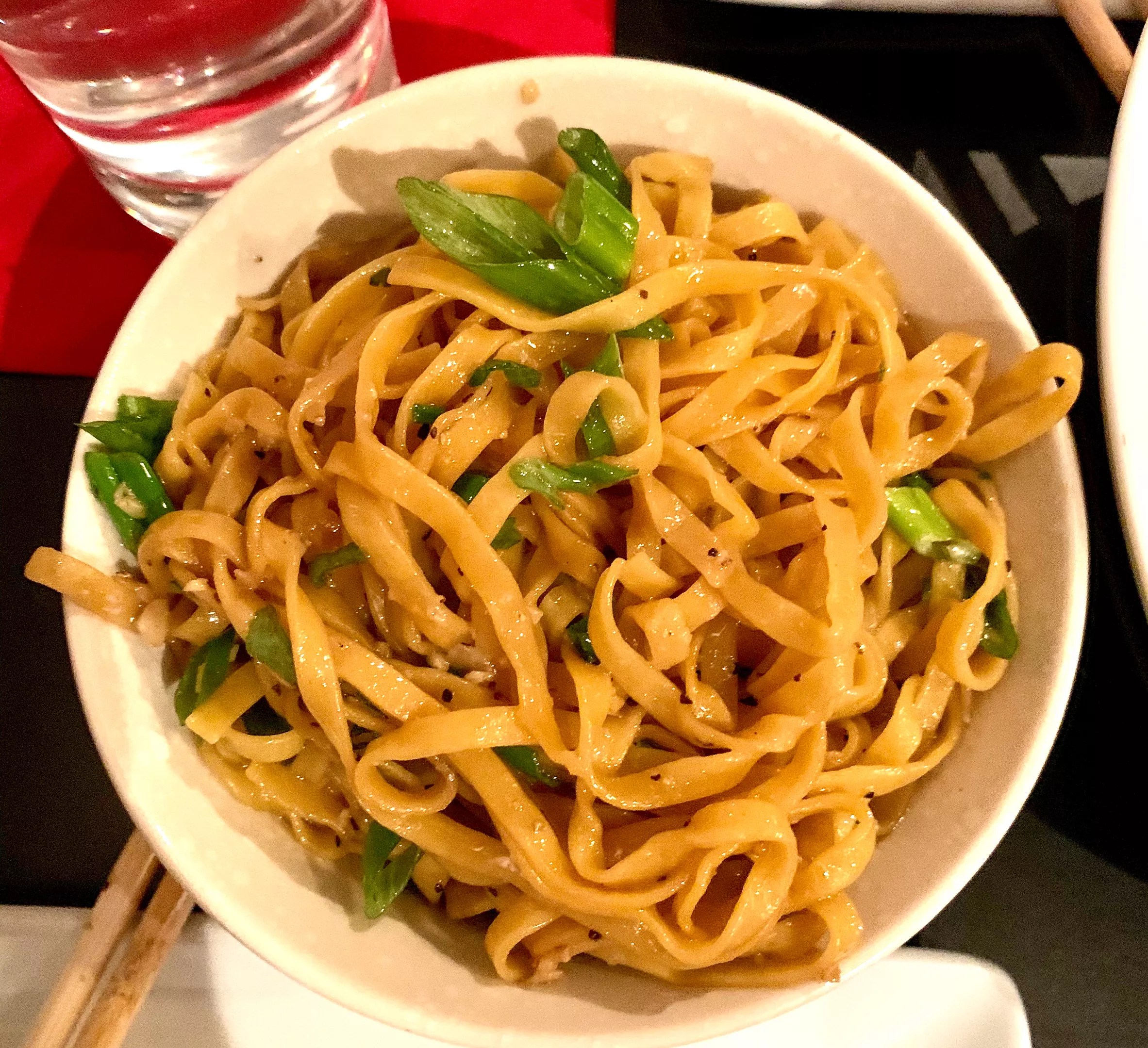 Garlic noodles from Mot Hai Ba, which pair easily with a protein cooked at home.
