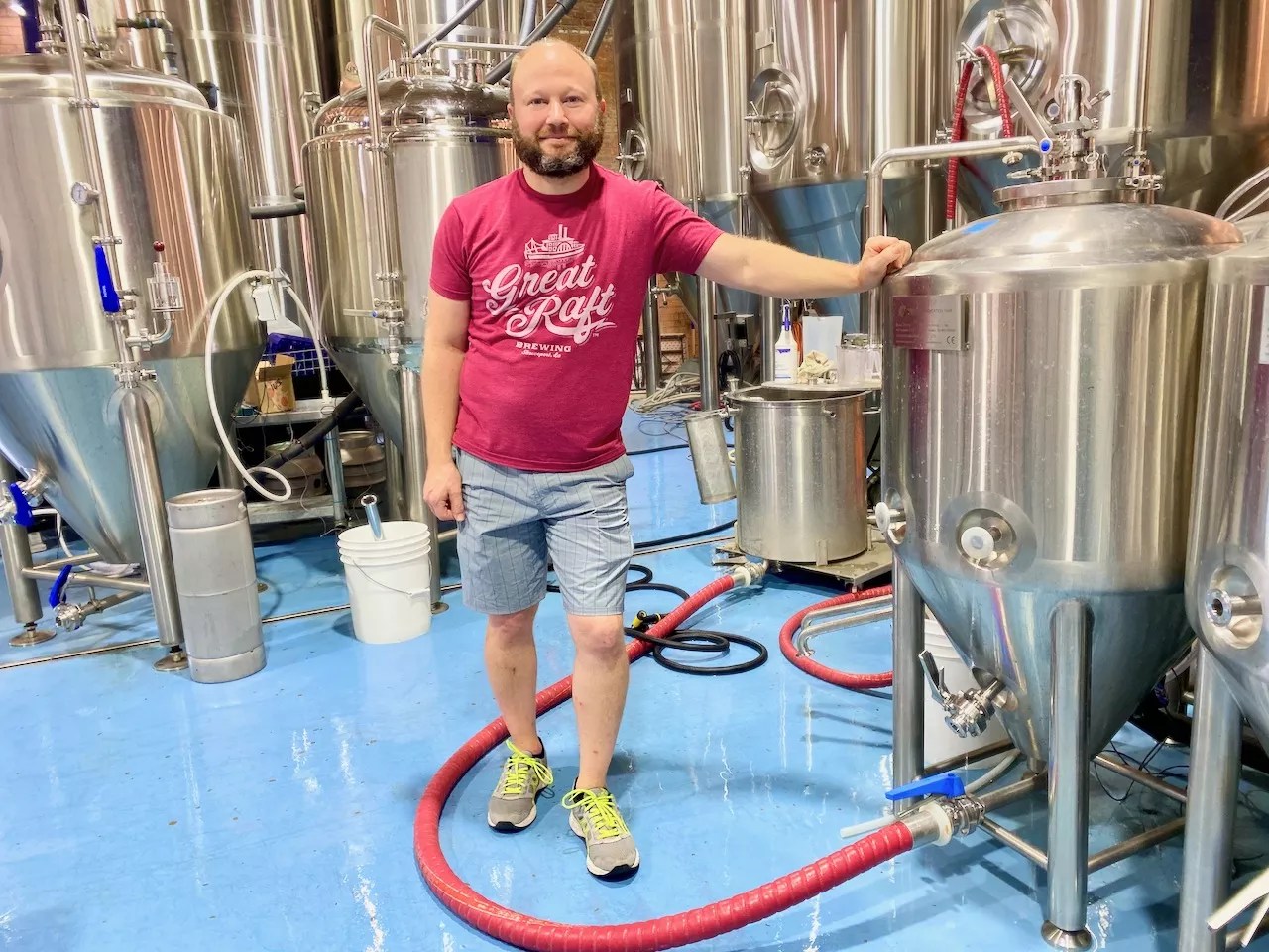 Peter Hemmingsen sporting a Louisiana-based brewery T-shirt, a nod to the camaraderie across the industry.