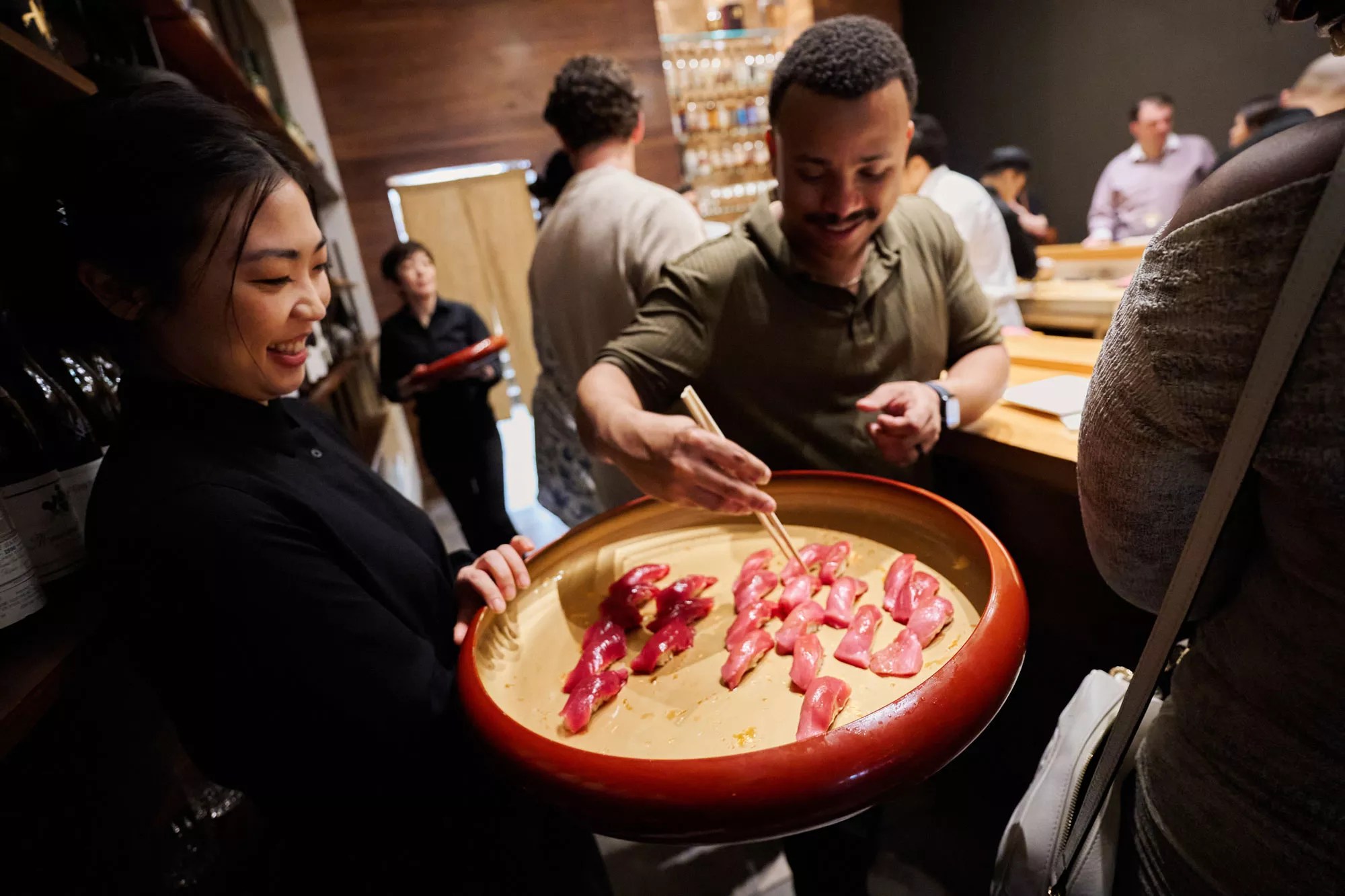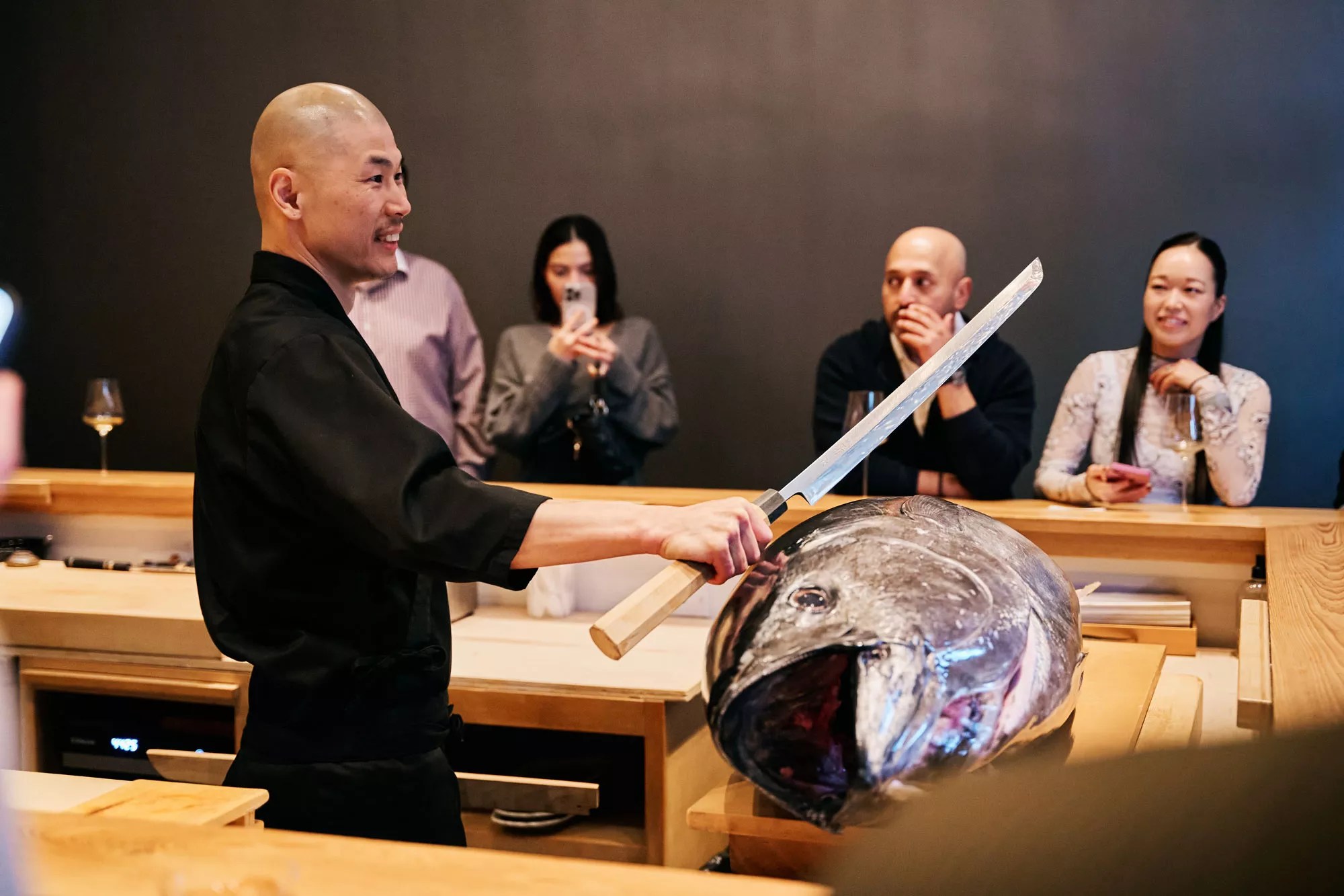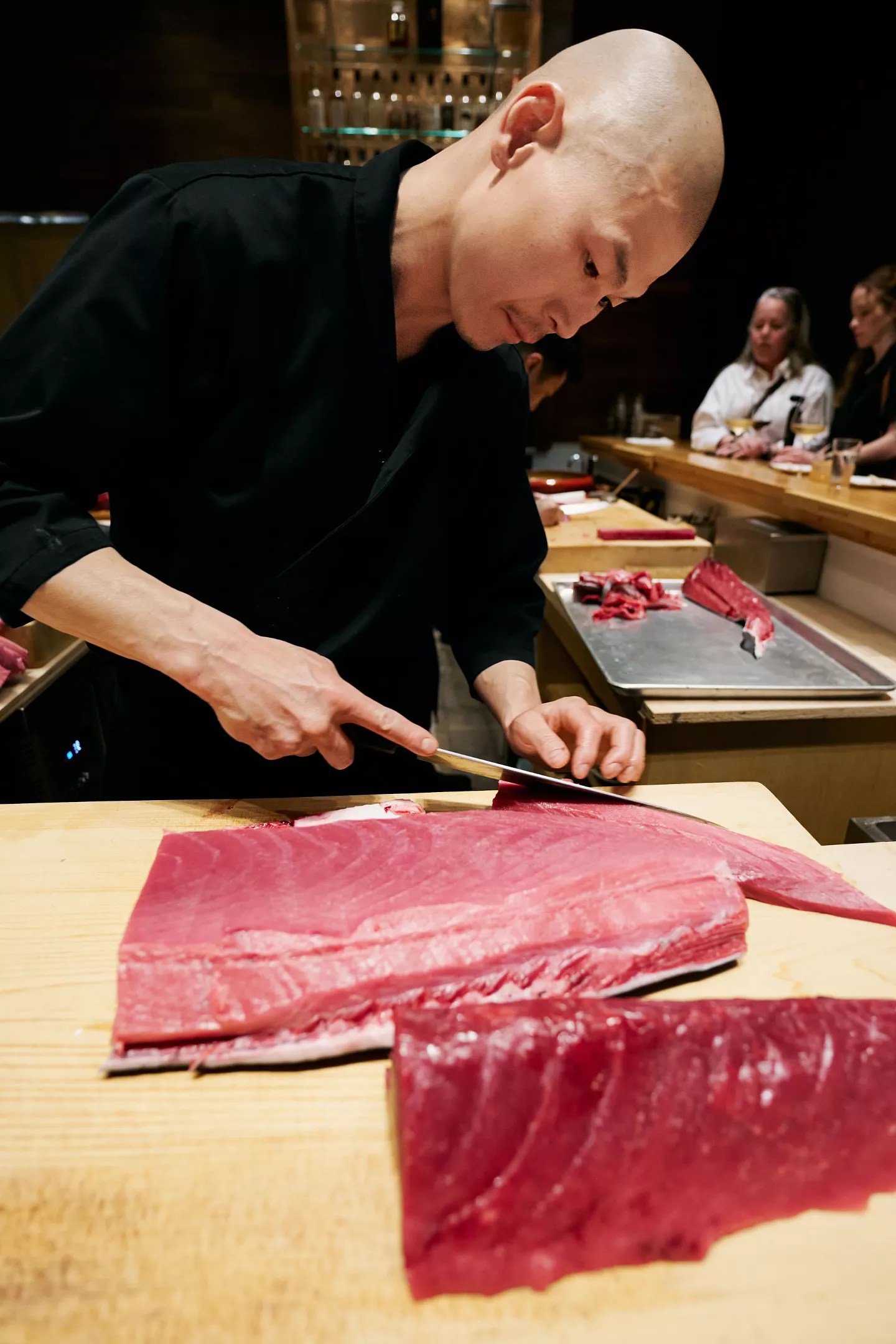 On a handful of occasions a year, Namo will bring in a nearly whole Pacific bluefin tuna to break it down in the center of the sushi ring. Mabuchi says the event requires some changes in logistics.