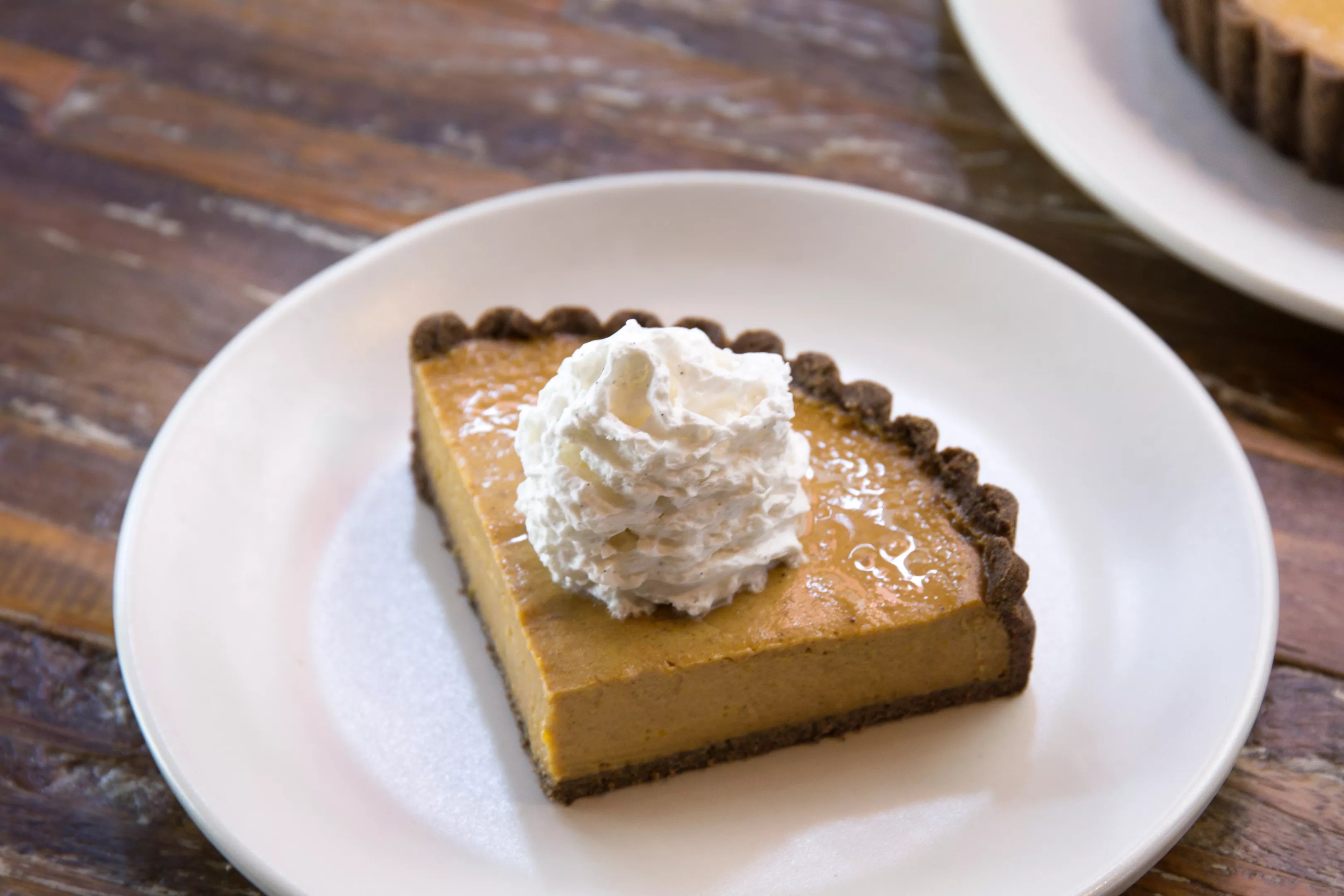 Squash pie: a graham pie crust filled with spiced butternut squash filling topped with coconut cream ($9)