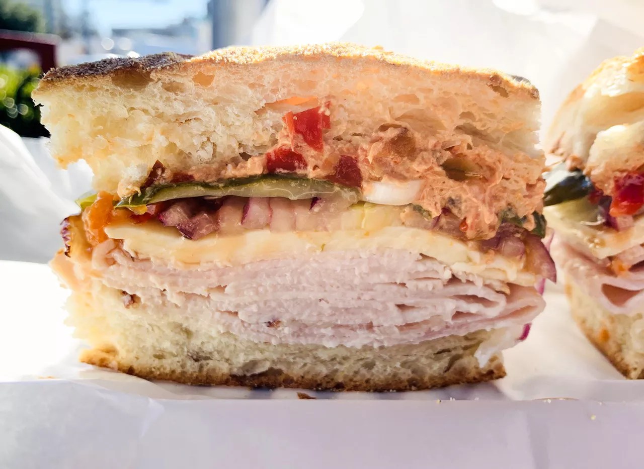 As an example from a recent visit, less than 10 bucks will get something like this: A personalized sandwich chef (is there any better collection of words?), per my request, lacquers the porous bone bread with a Grand Canyon-orange sun-dried tomato spread, turkey, onions, pickles, two slices of pepper jack cheese and – importantly – a scoop of hot relish. It’s bright red and pickle-y, a blast of eye-watering tartness. It cascades down the turkey. The softball-sized sandwich is wrapped neatly in wax paper, handed over the counter, and you’re out of there in minutes.