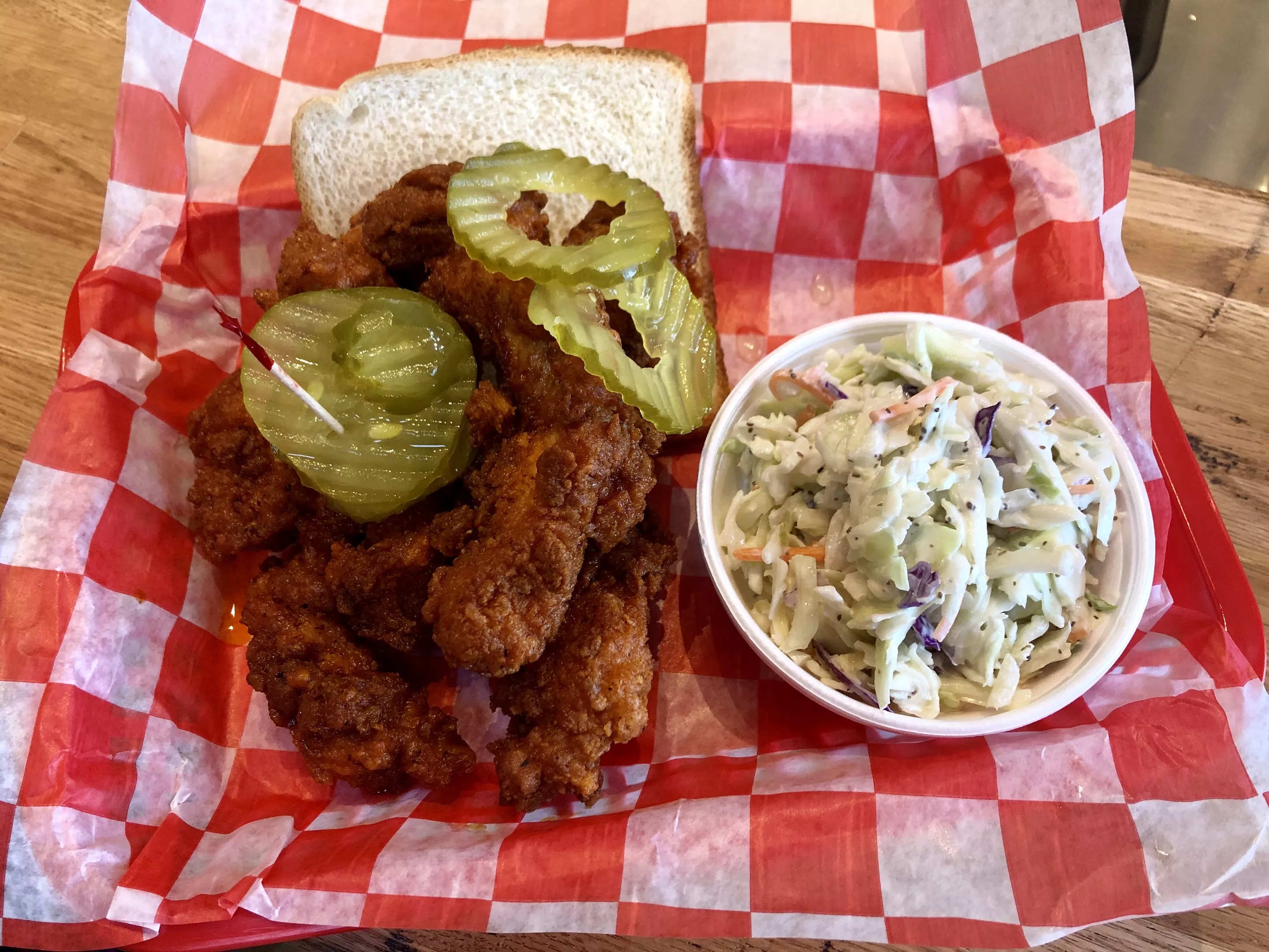 Four tenders with coleslaw at 24 Hot Chicken