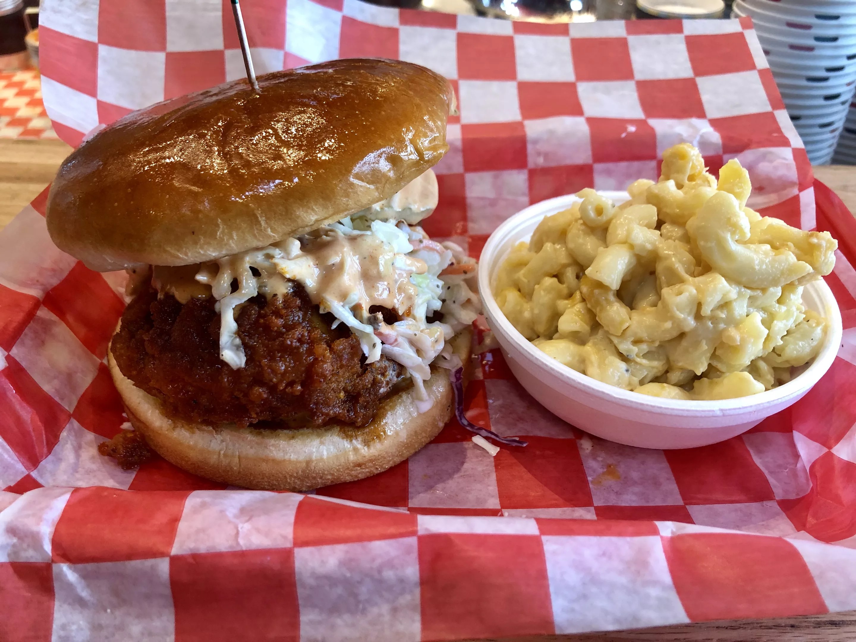 Enjoy your chicken with one of their four dipping sauces, including 24 Comeback Sauce, a savory-sweet mayo-based sauce. They offer four sides a la carte: fries ($2.50 for small, $5.99 for a box), mac & cheese ($3.49), coleslaw ($2.99) and potato salad ($2.99).