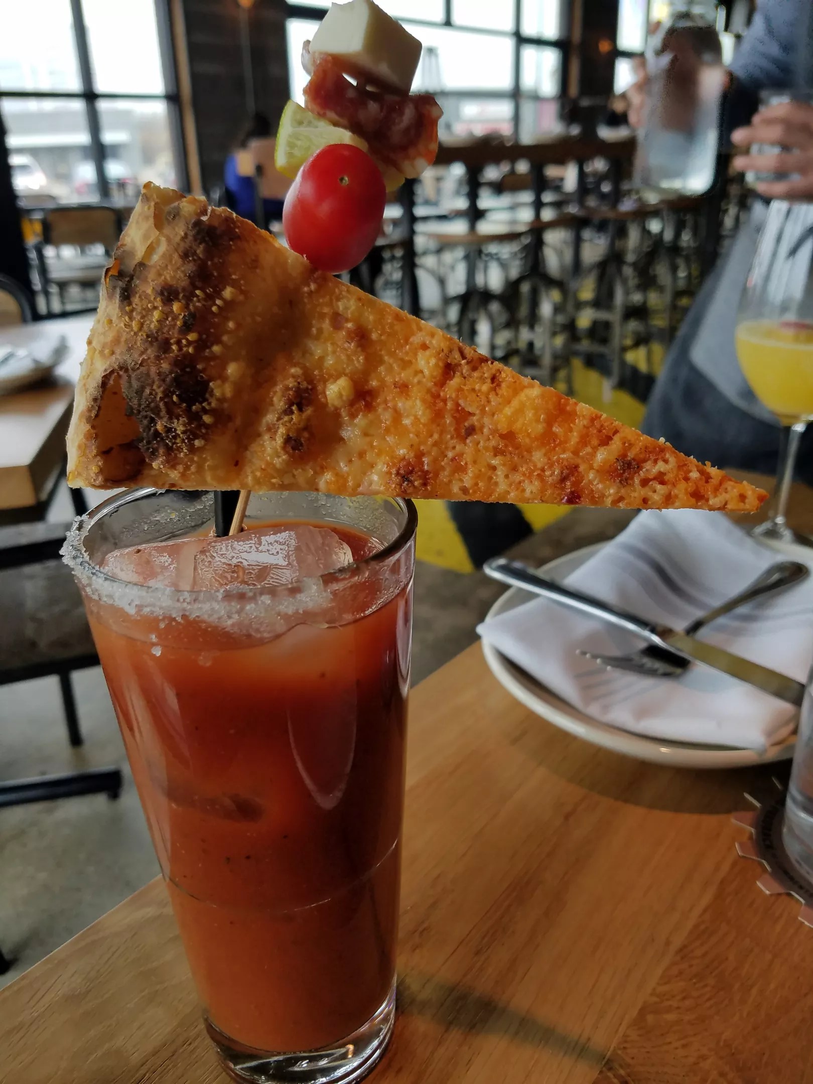 This bloody mary’s cheesy bread flag alerts drinkers to the reduced executive functioning that awaits them at the bottom of the glass.