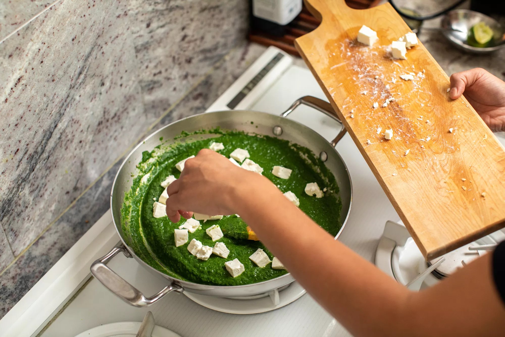 I didn’t. That night, my partner and I huddled over the kitchen island, inhaling two servings each of saag feta. There were no leftovers.