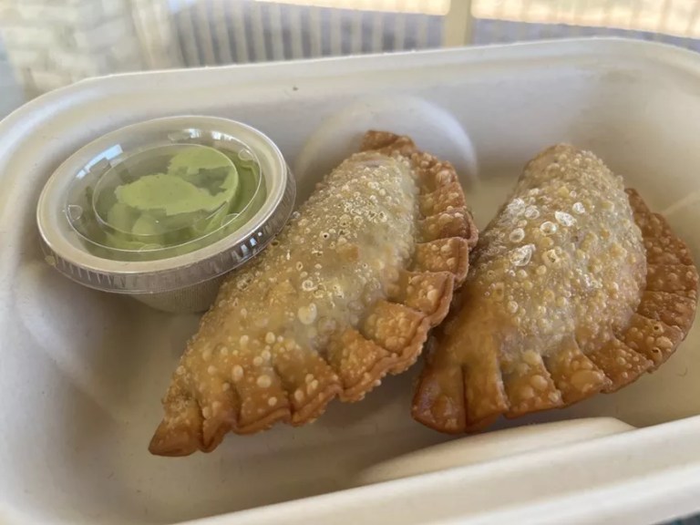 As of 2023, he has a bustling food truck business serving some of the best Puerto Rican fare in the city. Start with an order of the empanadas, which comes in single or double packs. Choose between a hearty empanada – stuffed with meat, cheese and sweet plantains – or a vegetarian option. Both offer a crispy pastry fried to a golden caramel color that quickly flakes when bitten into. Inside the flavors are a mix of sweet, savory, tangy and everything in between with an ideal crust-to-filling ratio.