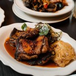 Top Pick: Boring chicken breast entrees are banished here, replaced instead with “magic” chicken thighs. The savory thighs are pan-fried and glazed with a ginger guava sauce, and are served with mashed yams and mustard greens that sing with flavor.