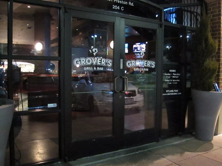Searching for a bar north of Addison won’t yield too many results. But, should you find yourself near Preston and Frankfurt, Grover’s has all the staples of the neighborhood bars to the south. The space is warm, with a stained concrete floor and an exposed red-brick wall. The stone bar sits high and looks up to several flat-screen televisions. The air in the adjacent music venue room lingers with the smell of the neighboring cigar shop’s wares, and the stage overlooks plush red couches and cocktail tables where patrons lounge while cover bands perform.