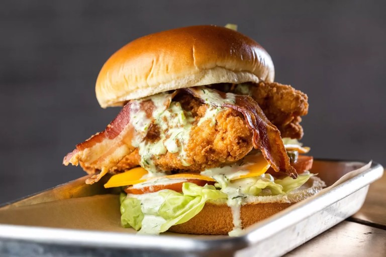 Hops and Hens is a casual and fun concept with lawn games such as Jenga, Connect Four and washers. Its menu of fried chicken sandwiches and tenders boasts a unique brine with hops and brewer spices and homemade sauces on chicken tenders and sandwiches. Their Texan fried chicken sandwich is topped with barbecue sauce, bacon, crispy onions. The Chicken Ranch has bacon, cheddar, lettuce, tomato, pickle and herb ranch. The TX Hot is tossed in their hot sauce, topped with kale slaw and H&H sauce and pickles. They offer a bevy of sauces; there’s an IPA honey mustard, herb Ranch, H&H Sauce and a red hot sauce, all house-made. Hen House Tots are a meal topped with a beer cheese sauce, bacon, green onions, red hot sauce and herb ranch.