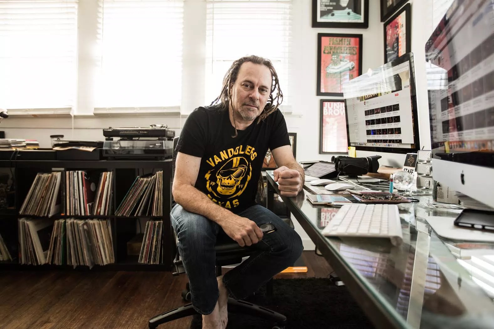 Liles lives around the corner from the Kessler, so when he’s not at the theater, he’s working from his home office. We hang out there for a while. He works in front of two large Macs, clicking from emails to spreadsheets to photo and video editing software. He’s surrounded by records, including his own, like Cottonmouth, Texas’ Anti-Social Butterfly and the 2017 reissue of The Sound of Deep Ellum. Framed posters and LPs signed by the artists cover the walls.