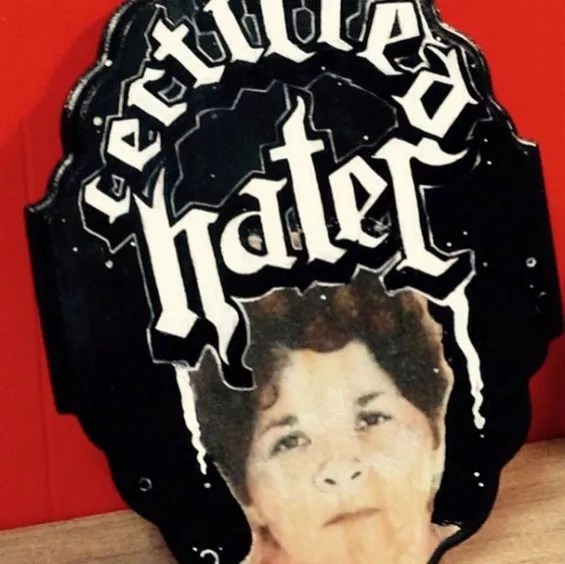 A plaque at Country Burger bears the image of Selena’s killer with the words “Certified Hater.”