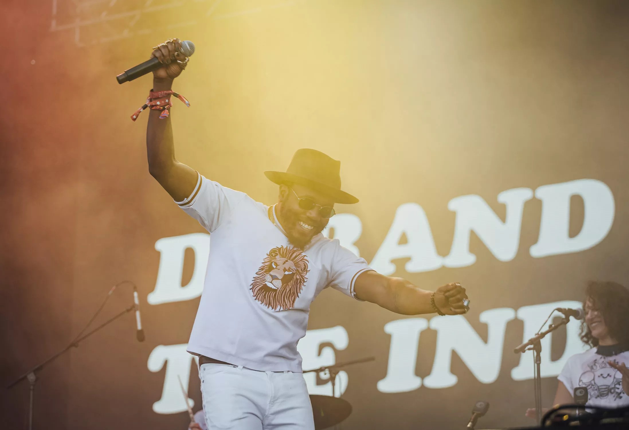 Durand Jones and the Indicators getting groovy on the T-mobile Stage.