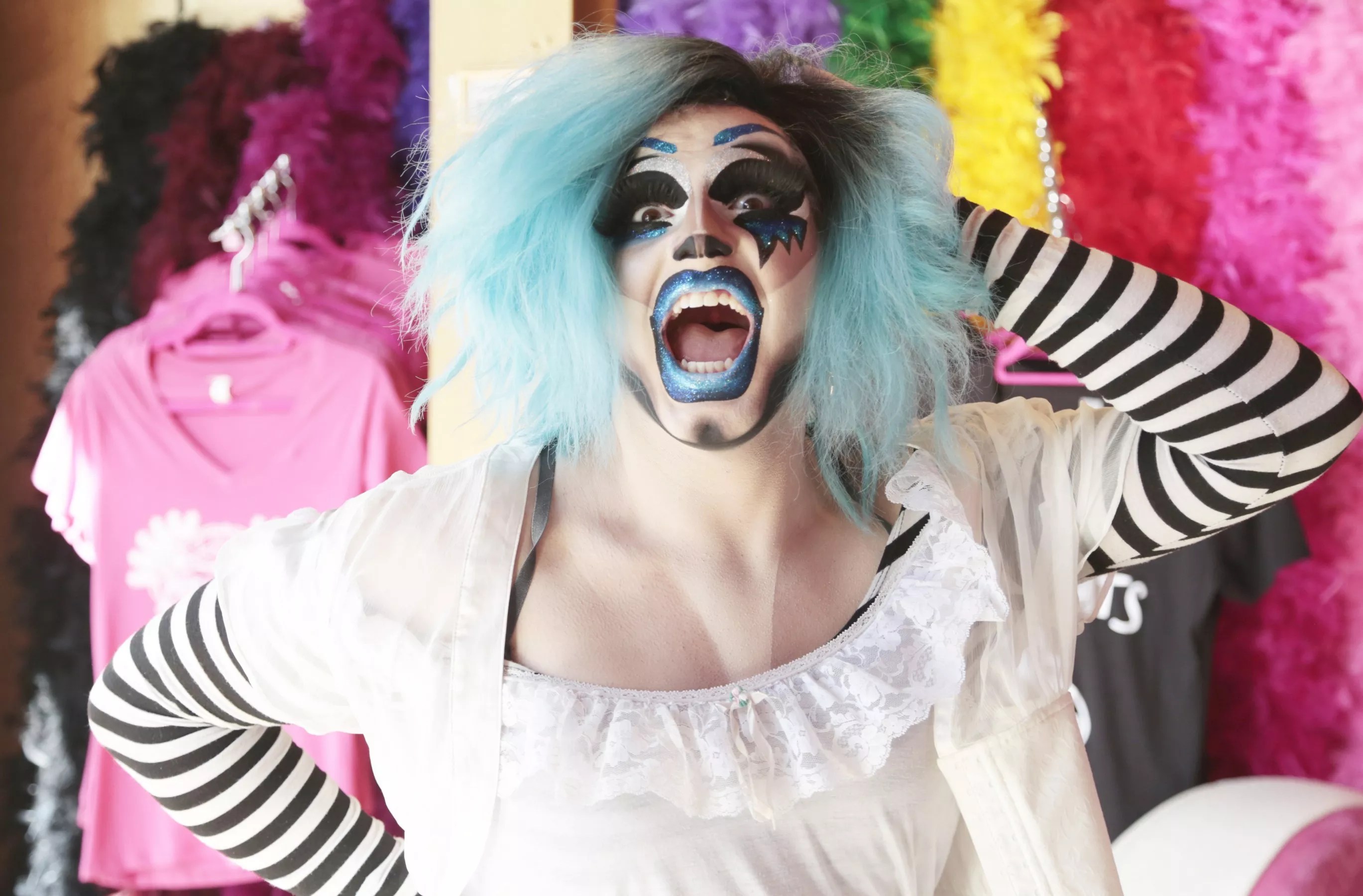 “I wanted to be an inspiration for the weird kids in the queer scene who don’t feel like they’re sparkly rainbows and whatnot,” she says. “They’re too punk and too goth for the queer scene, and they’re too gay for, like, the super-uber-masculine industrial scene – that’s who I was.”