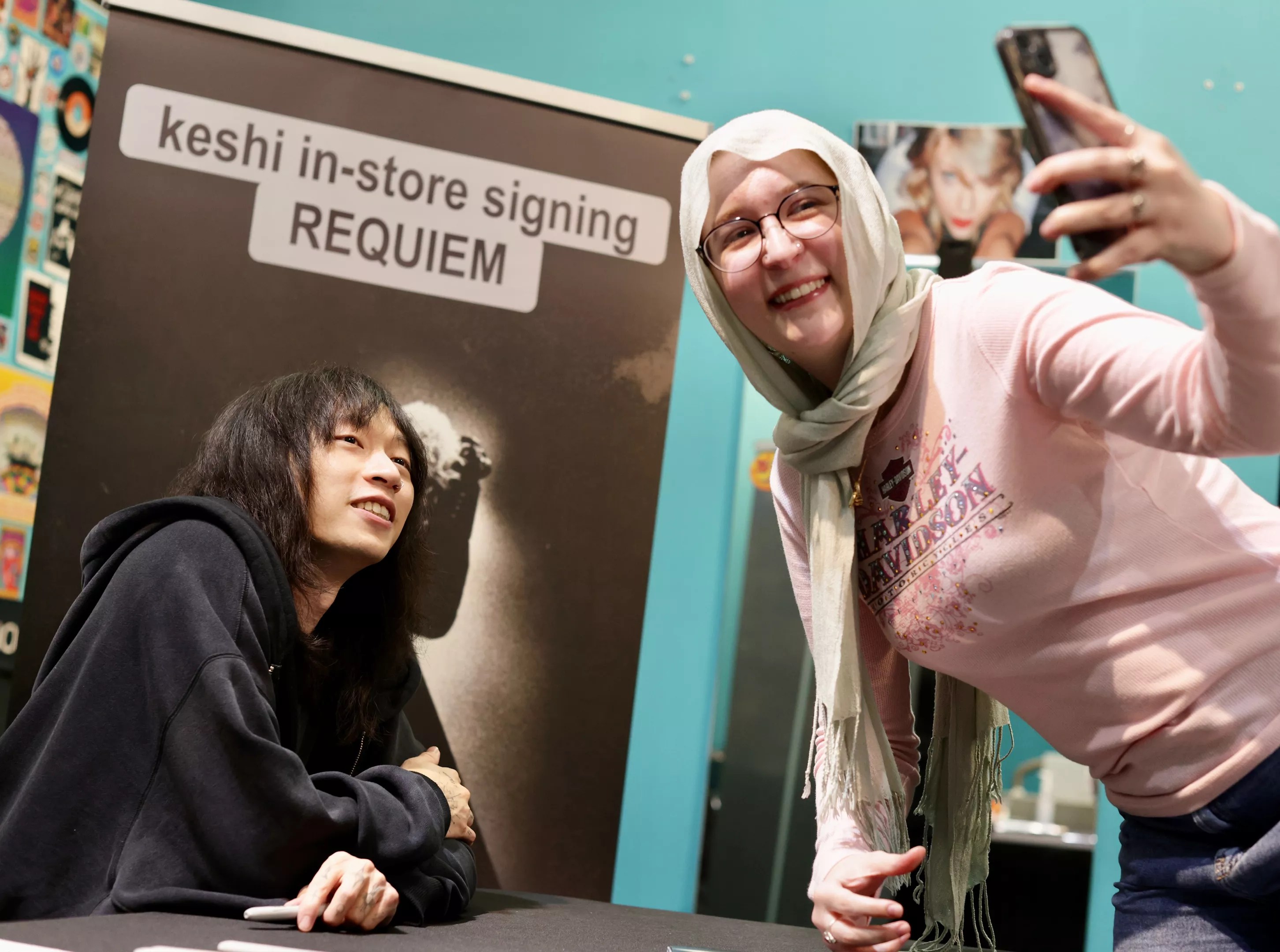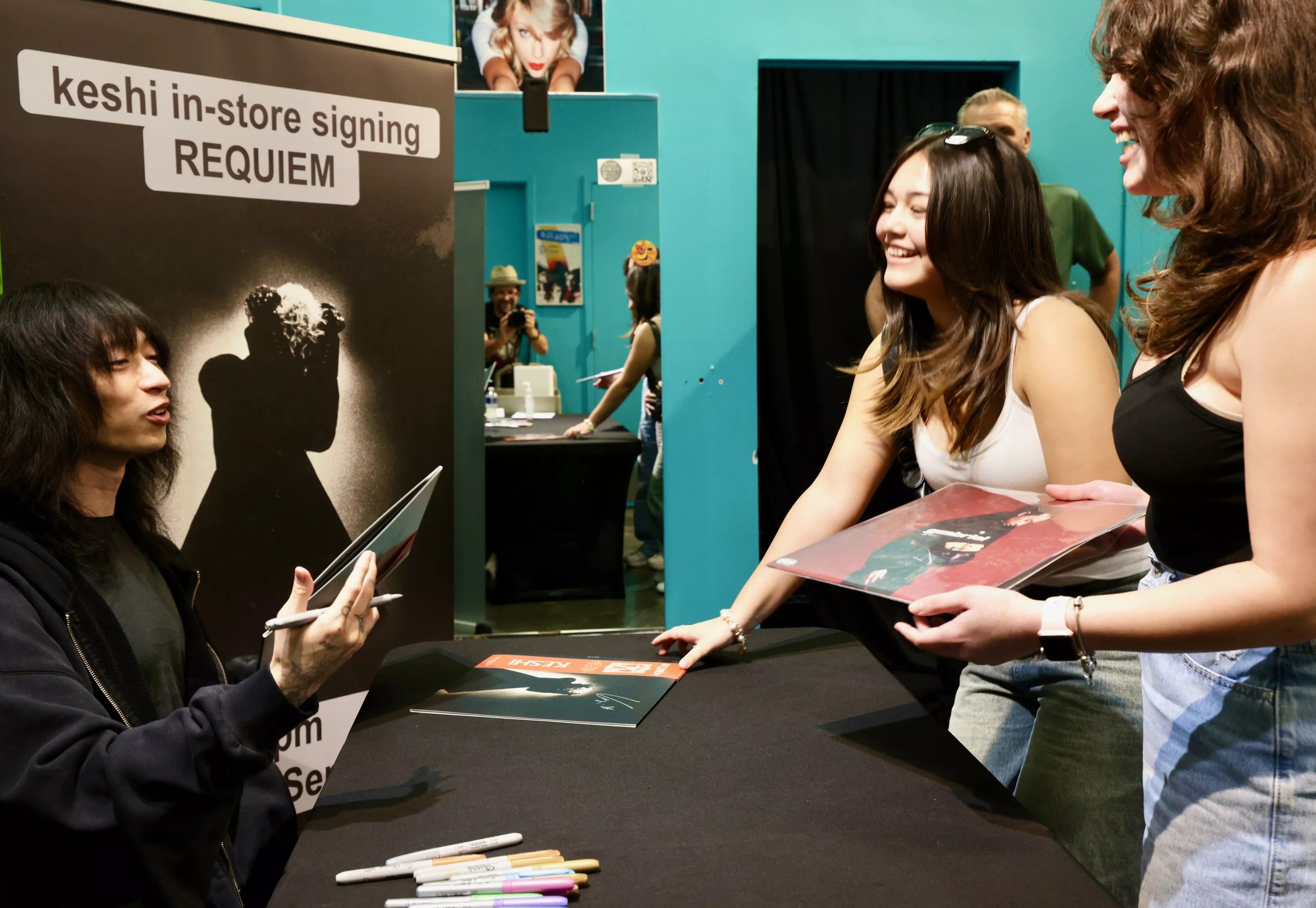 Passersby might’ve thought Elvis had entered the building, as several guests left crying and others left overly giddy. Once every fan had a chance to meet their idol and take a photo, store owner Phil Ramirez locked up and let Keshi – a vinyl fan himself – shop in private (he picked up a couple of anime soundtracks) before catching a plane to his next destination.