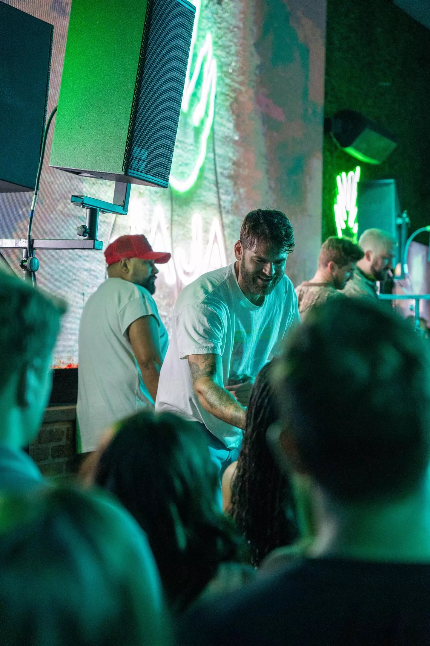 The biggest surprise of the night was the venue, however. Bottled Blonde is not a live music venue and is generally known as a sports and bottle-service club. It was packed elbows to assholes on Wednesday night as rumors made the rounds that the band would stop by for a secret show. That didn’t stop the hustling staff from being cheerful and having fun.