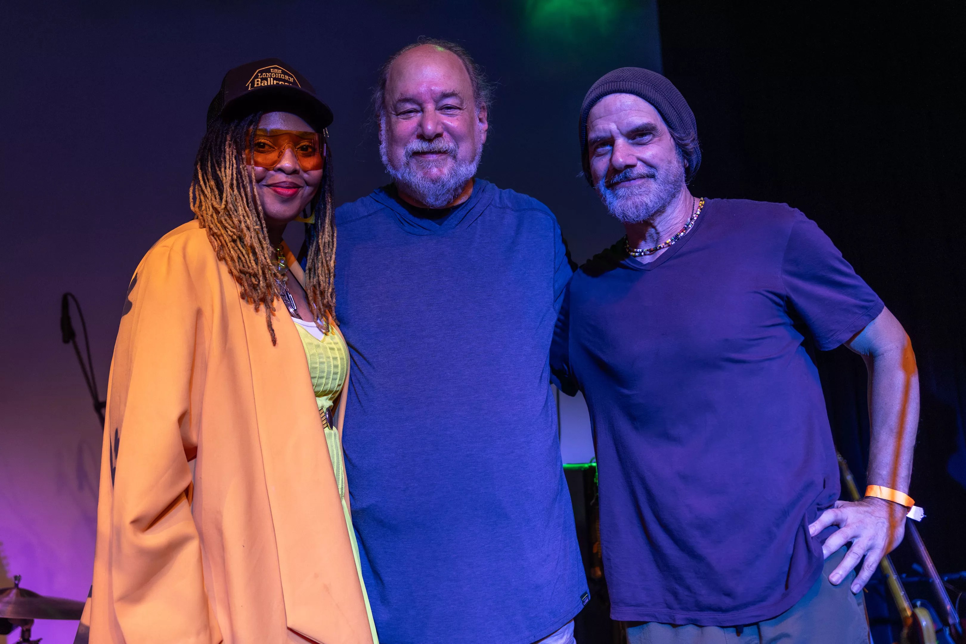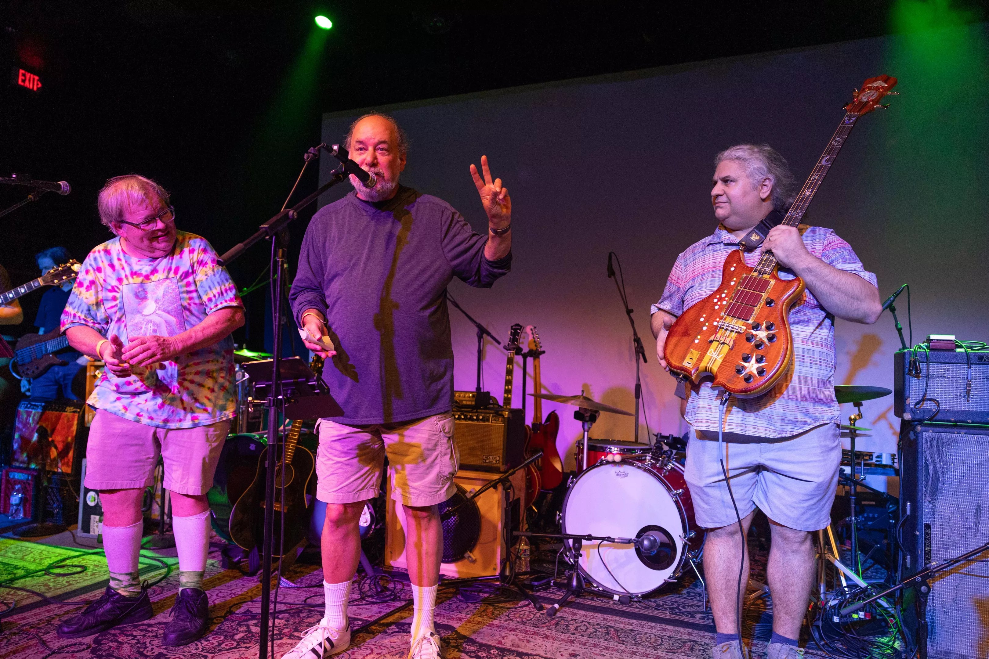Upon entering the venue early, around 4:30 p.m., both the lobby and the upstairs were already packed. As the balcony seating began to fill up and people made their way to their places, the room was all smiles as fans were anticipating the first of four sets. Summer dresses, paisley prints, cargo shorts, sandals, of course, the famous tie-dye shirts were worn by all. The walls of the Kessler were also transformed into a mirage of tie-dyed tapestries hanging from the balcony, giving visual cues that Grateful Dead music was soon on the way. As the “Dallas jamily” packed in around the front of the stage, instruments consisted of an arsenal of guitars, hand drums, amplifiers and what looked to be a period-correct electric organ and keyboard and by 5:00 p.m., the show was off and running.