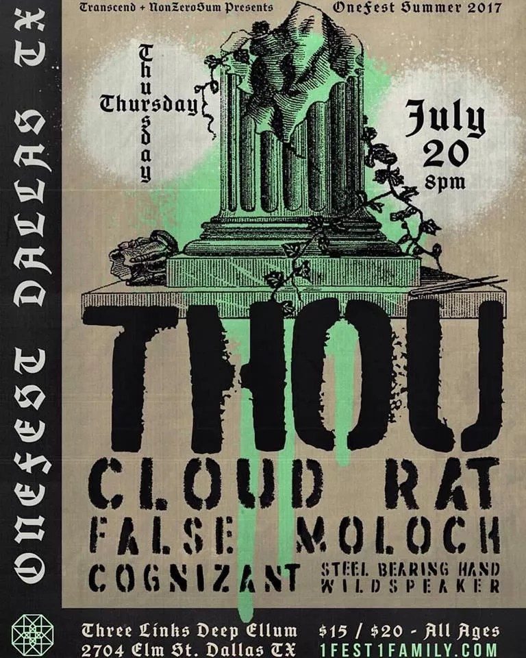 1Fest, with Thou, False, Cloud Rat, Moloch, Cognizant and more, 7 p.m.-midnight Thursday, Three Links, 2704 Elm St., $15, prekindle.com.