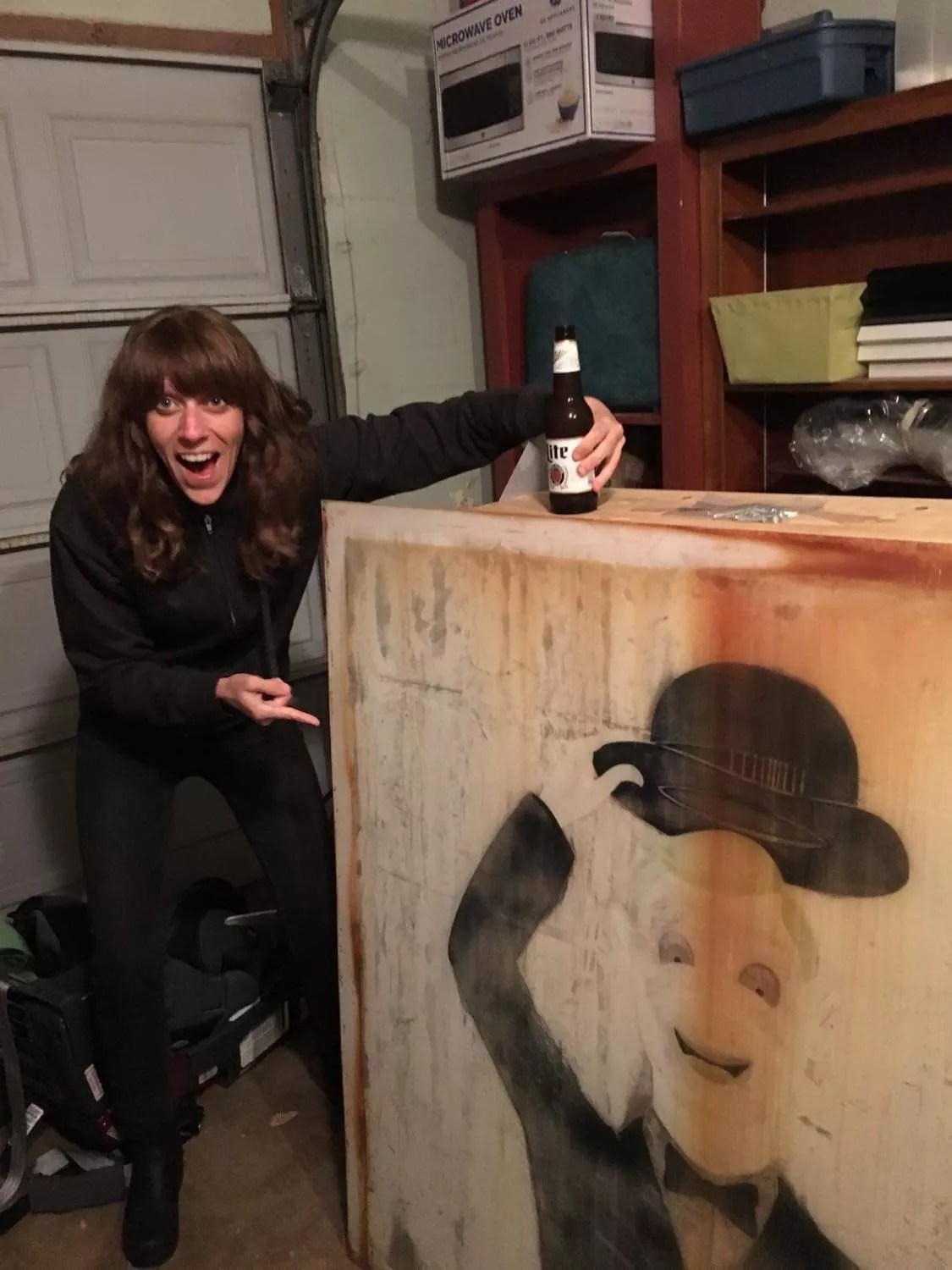Elizabeth Mott “EMott” proudly showing off the old Howdy Doody sign that she got from the dumpster after it was replaced.