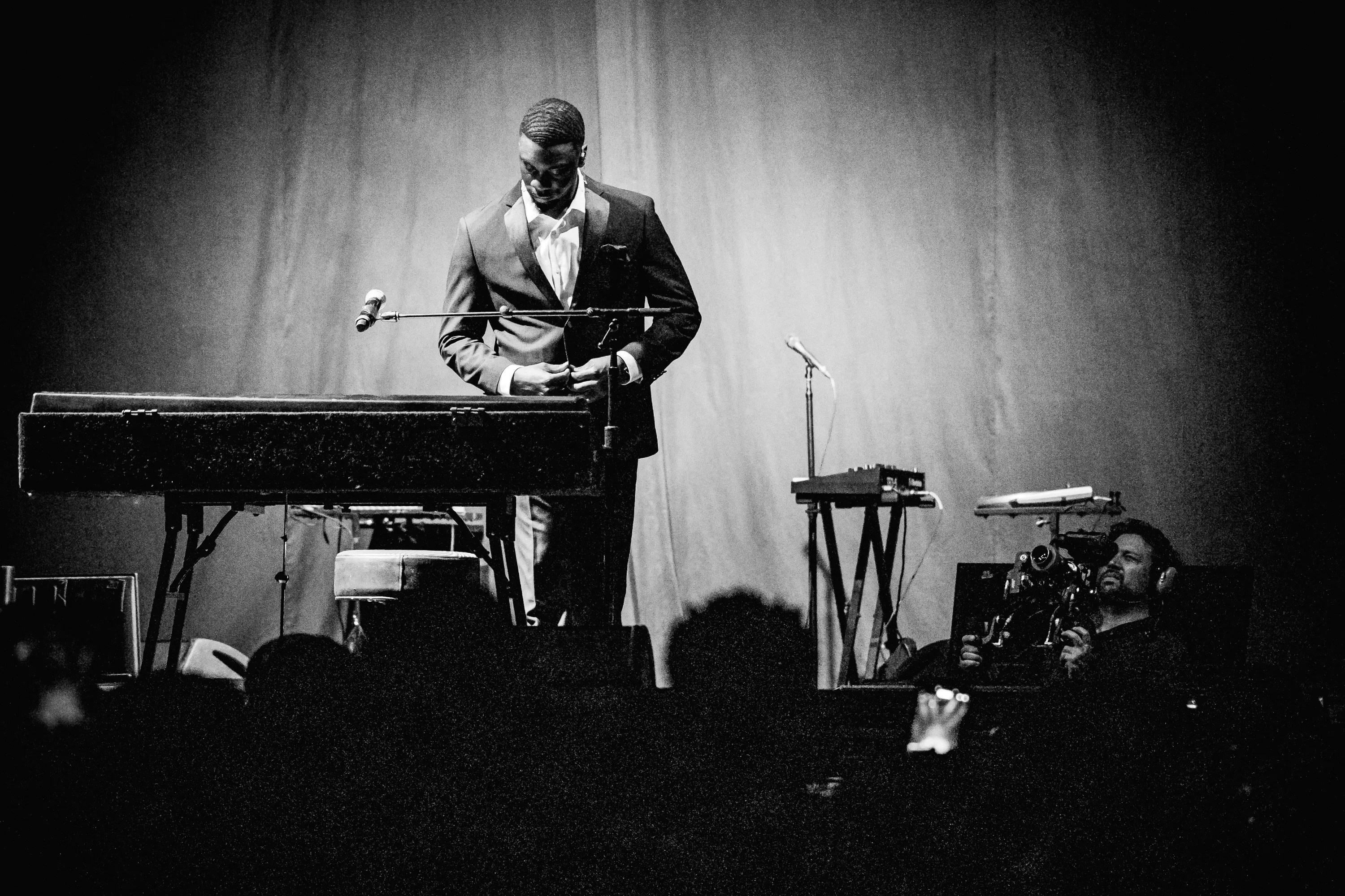 Cascading lights bathed the crowd, as eager guests peered over the landings in anticipation of Erykah Badu. Echos chanting “Erykah” from the floor level could be heard as the crowd looked ahead, waiting for what was to come. Dressed in a simple black suit and illuminated by light, Tye Harris, known in local rap circles as T.Y.E., eased humbly behind a piano and took a seat. Just a man and his piano – and bar after bar, began painting the picture of stories resonant with Black culture.