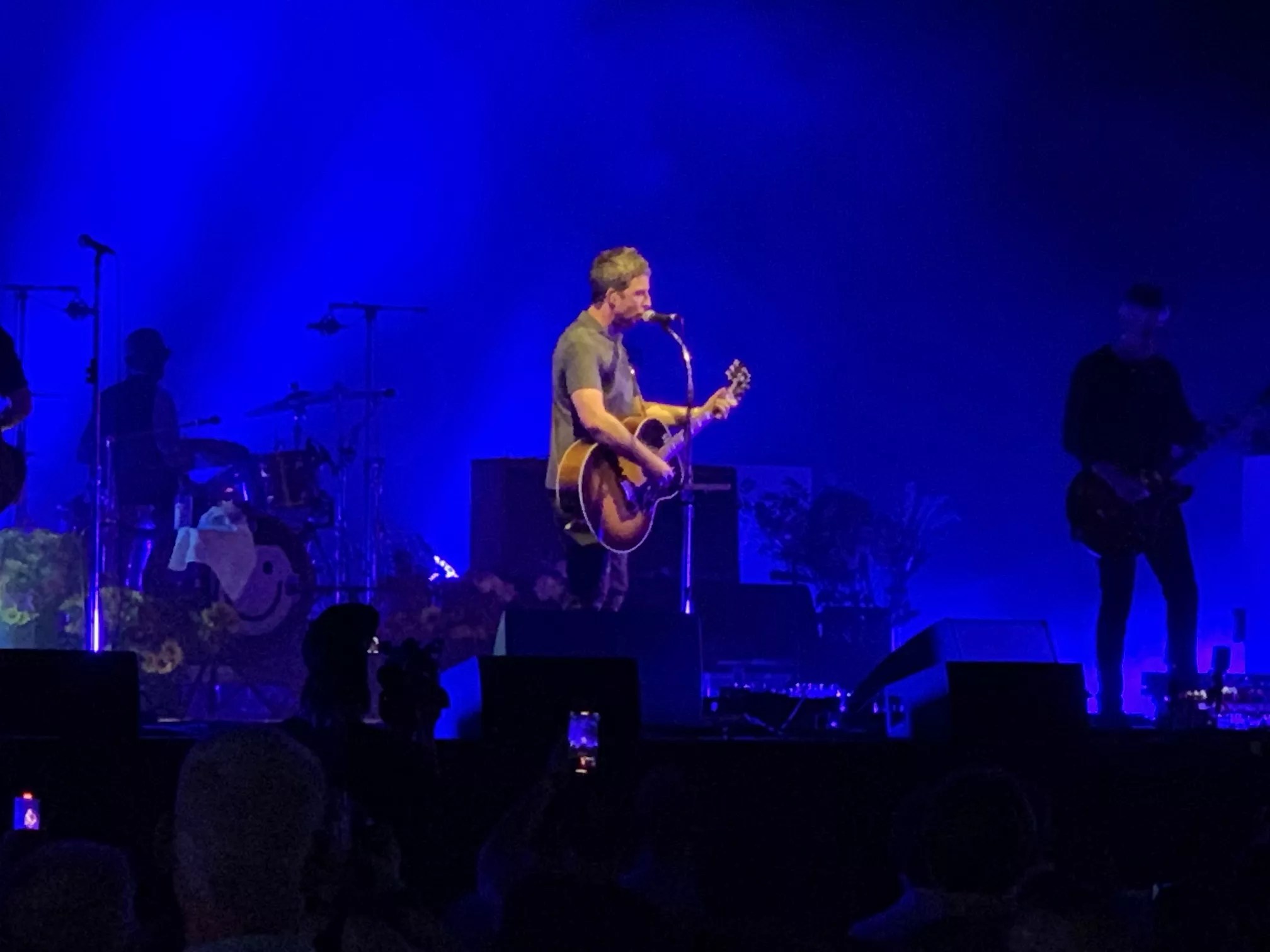On Saturday, Noel Gallagher came in strong with the second song, the new single “Council Skies,” in which his voice dominated the chorus without a flaw.