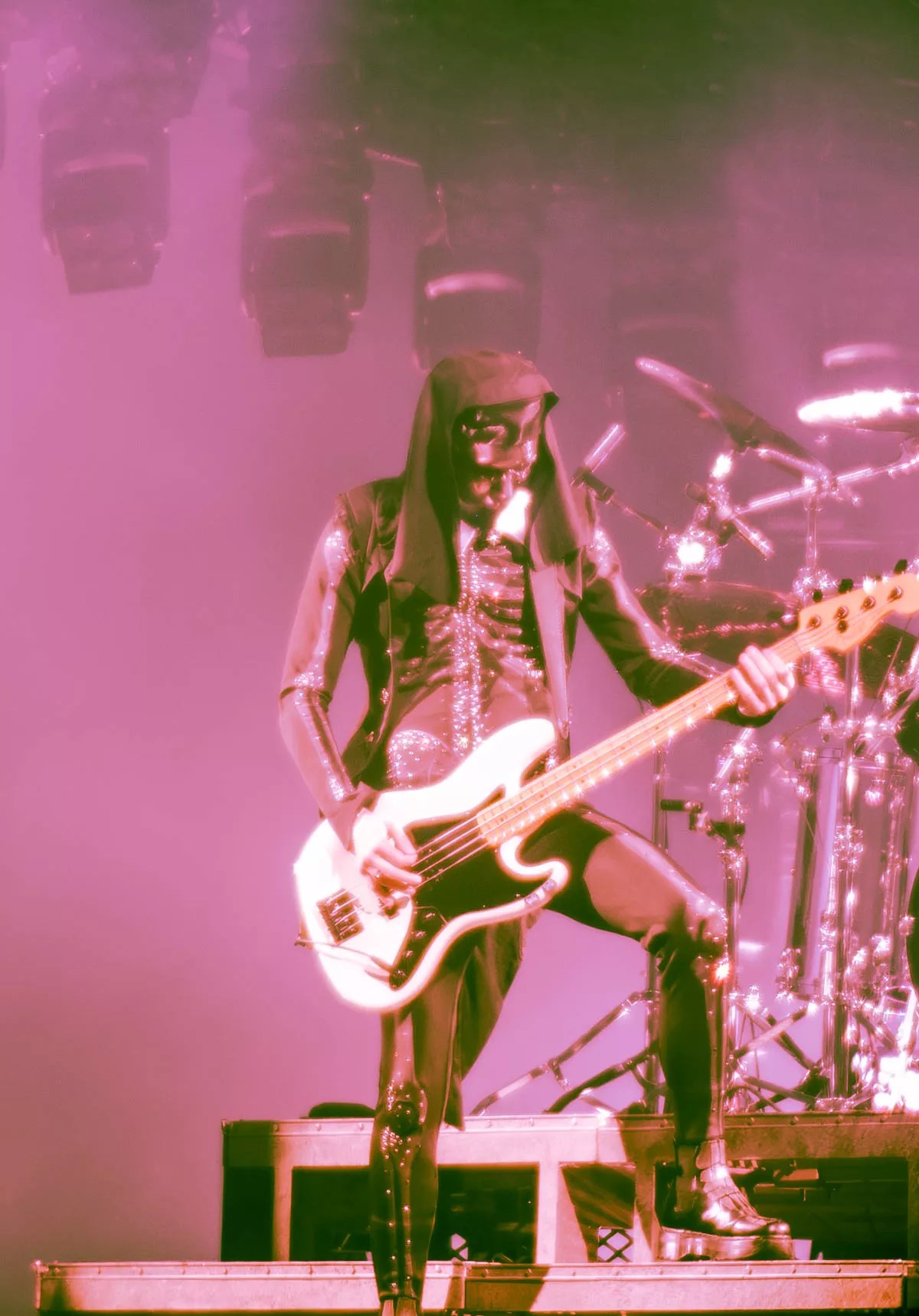 People with faces painted like skulls entered the dark, hazy concert hall where choir music played in the background. The stage was curtained off with artfully torn black drapes, adding to the mystery and anticipation of the upcoming performance. As we took our seats, it felt as though a theatrical production was about to begin.