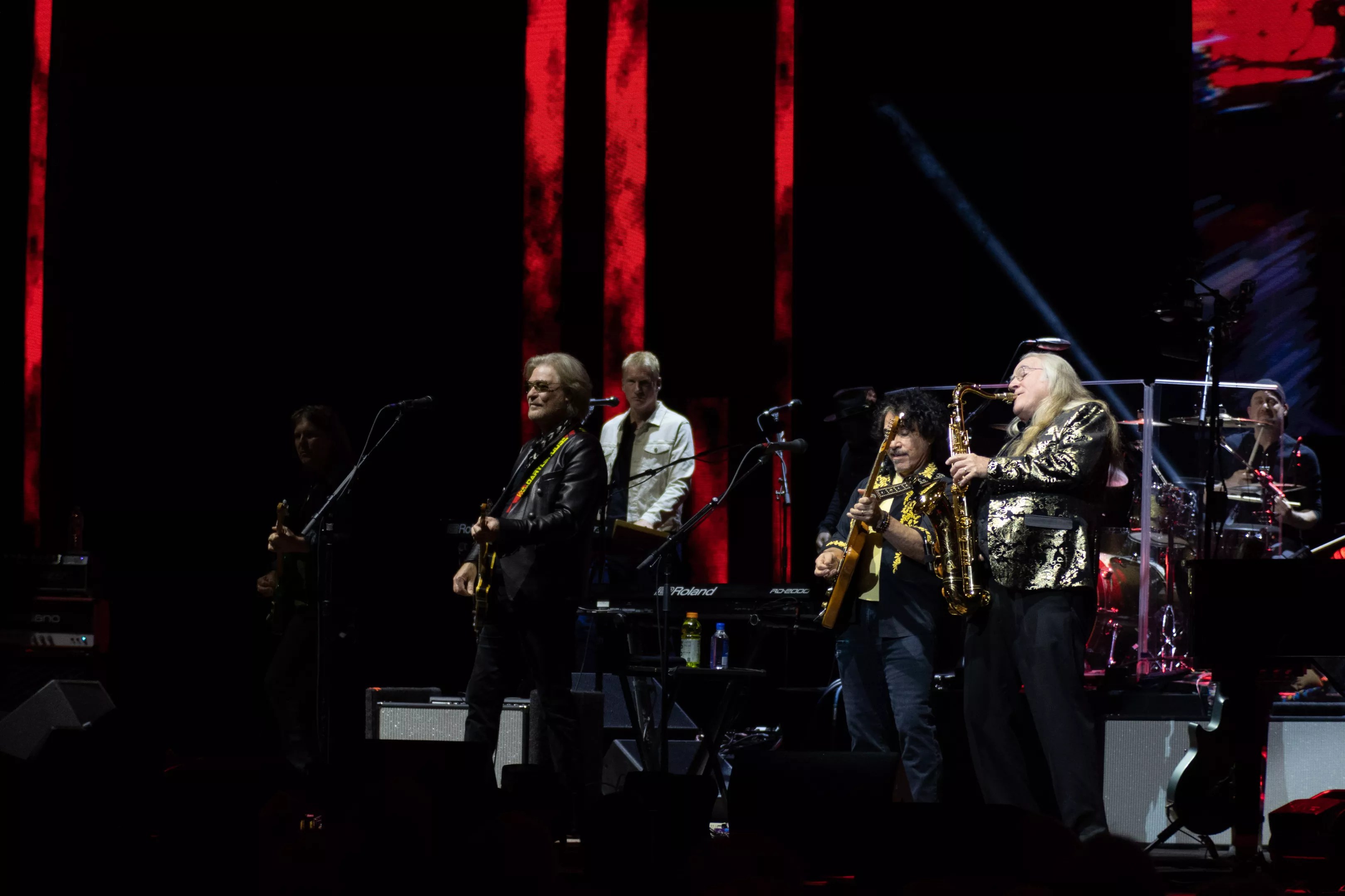 When Hall & Oates took the stage, the crowd got rowdy from the jump with “Maneater.” The band rolled through some big hits with “Out of Touch,” “She’s Gone” and “Say it Isn’t So.” Daryl Hall started off on guitar but mellowed things out as he went to the grand piano. As he sat down, he had some issues with the microphone’s sound.